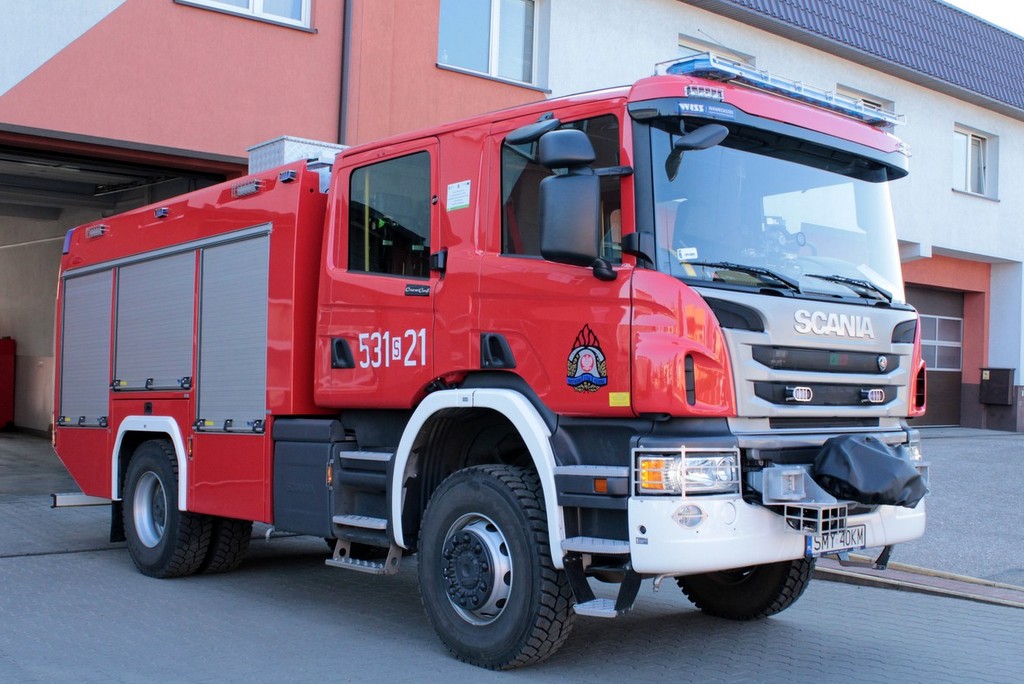 Scania to średni samochód gaśniczy o napędzie uterenowionym wyposażony w zbiornik wody o pojemności 2500l i zbiornik środka pianotwórczego o pojemności 250l, a także autopompę o wydajności 1600l/min. Jest to samochód który jest wyposażony uniwersalnie – w taki sposób, aby w zakresie podstawowym, zastęp mógł poradzić sobie z każdym zagrożeniem. Dodatkowo przystosowany jest do ciągnięcia przyczepy z łodzią.