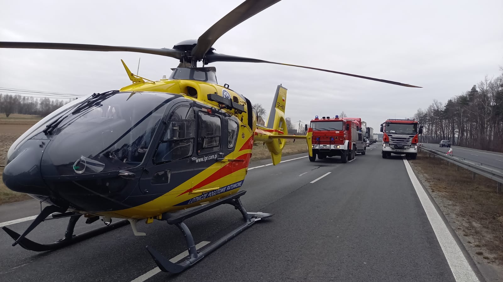 Stanowisko kierowania Komendanta Powiatowego Państwowej Straży Pożarnej w Myszkowie przyjęło zgłoszenie o wypadku samochodu osobowego na trasie DK 91 w miejscowości Winowno. Zastępy SP po przybyciu na miejsce zdarzenia ustaliły, że w zdarzeniu brał udział jeden samochód osobowy marki Honda, który znajduje się na prawym boku na środku jezdni w kierunku Katowic. W pojeździe podróżowały w sumie trzy osoby. W wyniku zdarzenia 1 osoba poniosła śmierć, natomiast 2 osoby zostały ranne. Działania strażaków polegały na zabezpieczeniu miejsca zdarzenia, odłączeniu akumulatora w pojeździe, neutralizacji i sorpcji płynów eksploatacyjnych znajdujących się na jezdni, uprzątnięciu drogi. W działaniach brał udział śmigłowiec Lotniczego Pogotowia Ratunkowego (Ratownik 4), który wspomagał działania medyczne. Dwie osoby poszkodowane zostały zabrane przez zespoły ratownictwa medycznego do szpitala w Częstochowie. Na czas prowadzonych działań ruch w kierunku Katowic był całkowicie zablokowany, Policja wyznaczyła objazd.