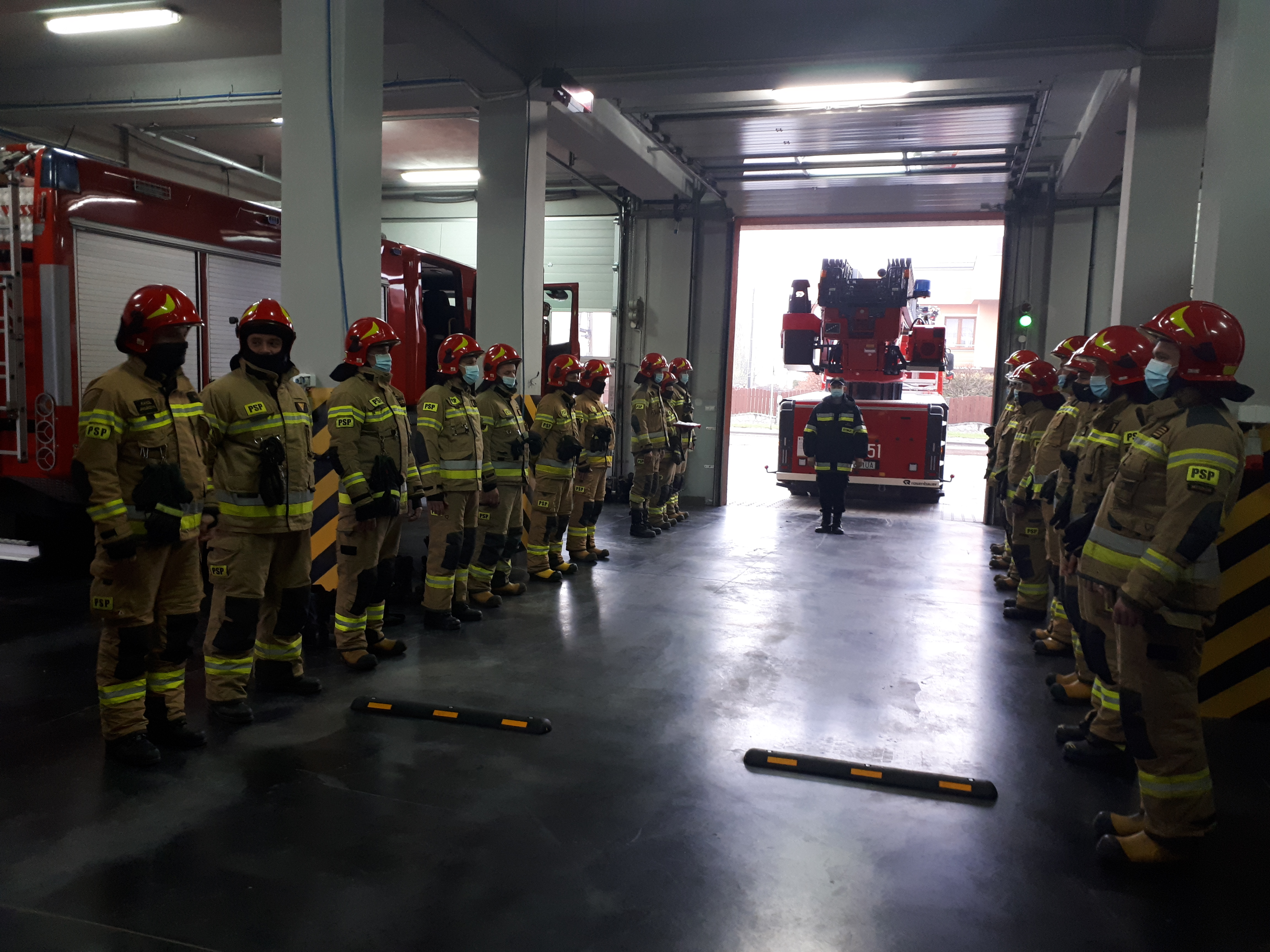 Uroczysta zmiana służby w JRG Myszków z okazji Dnia Flagi