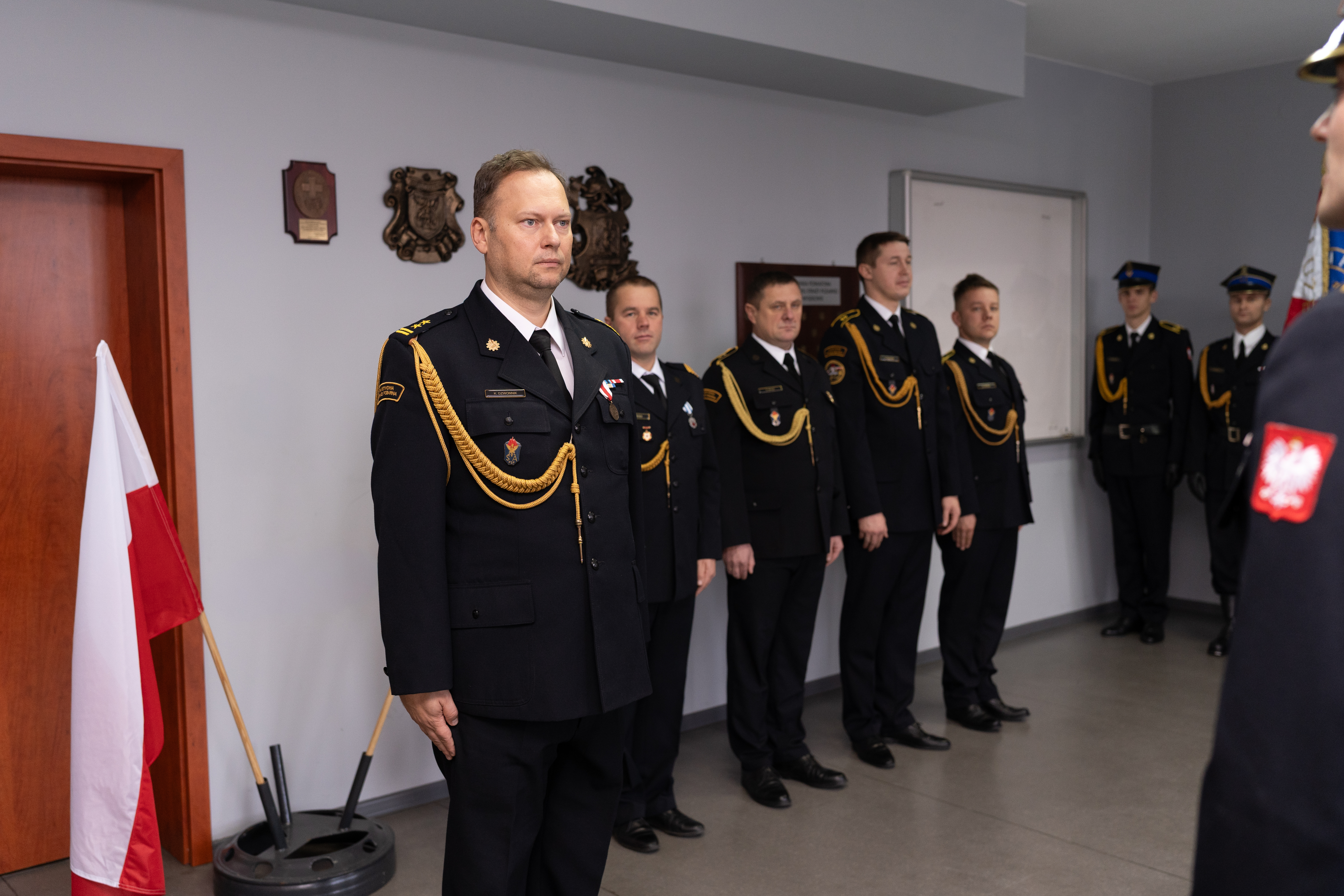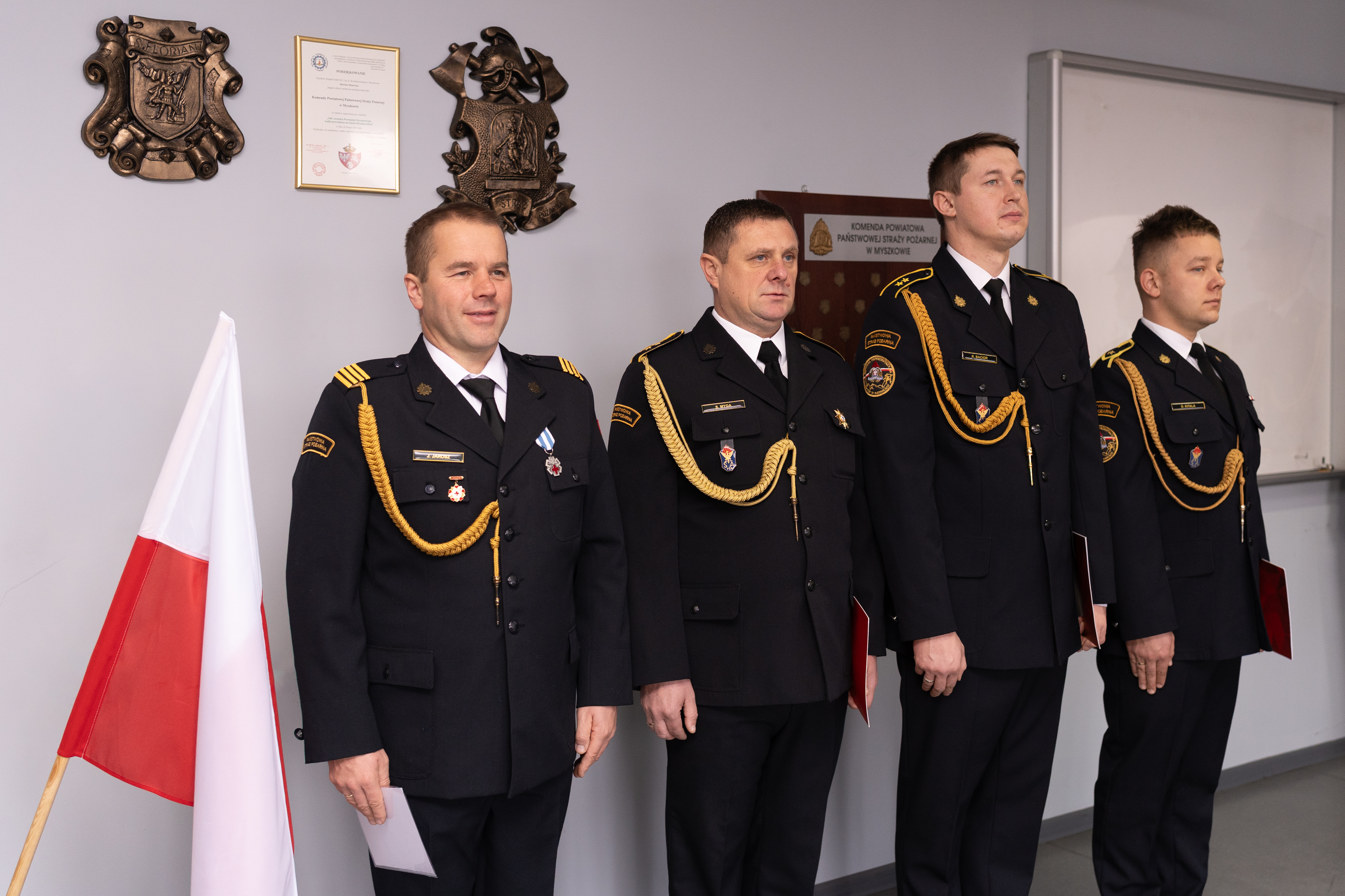 Na zakończenie uroczystości Zastępca Komendanta Powiatowego PSP w Myszkowie pogratulował wszystkim nagrodzonym i awansowanemu funkcjonariuszowi, wyrażając uznanie dla ich codziennej pracy, odpowiedzialności i postawy, które wpływają na wysoki poziom bezpieczeństwa mieszkańców powiatu myszkowskiego.