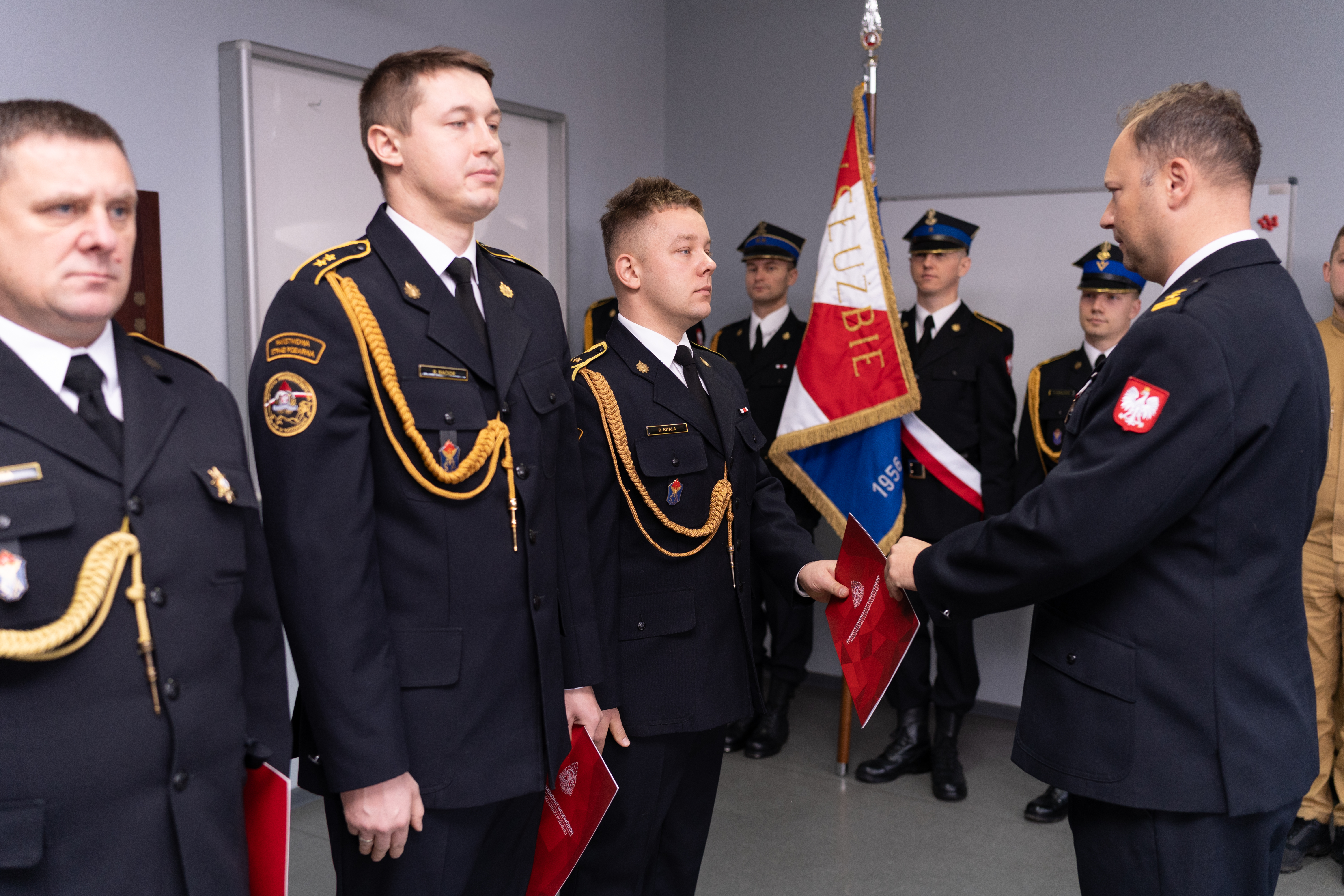 W trakcie zbiórki wręczono awans na wyższy stopień służbowy jednemu funkcjonariuszowi. Ponadto trzech funkcjonariuszy otrzymało nagrody uznaniowe Śląskiego Komendanta Wojewódzkiego PSP, stanowiące wyróżnienie za szczególne osiągnięcia oraz wzorową realizację obowiązków służbowych.
