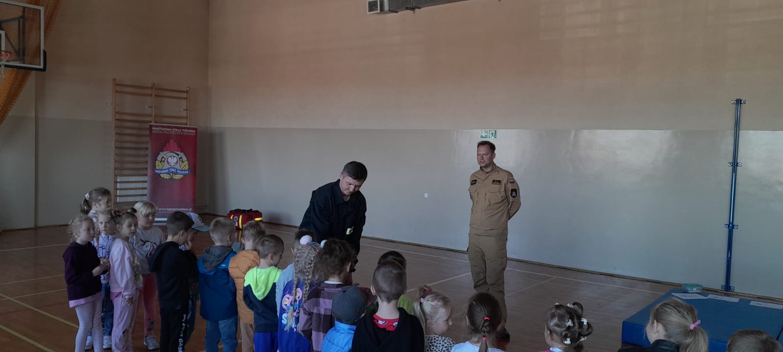2. W sali gimnastycznej pod nadzorem funkcjonariuszy dzieci miały możliwość przećwiczyć elementy kwalifikowanej pierwszej pomocy oraz uczestniczyć w zabawach zręcznościowych