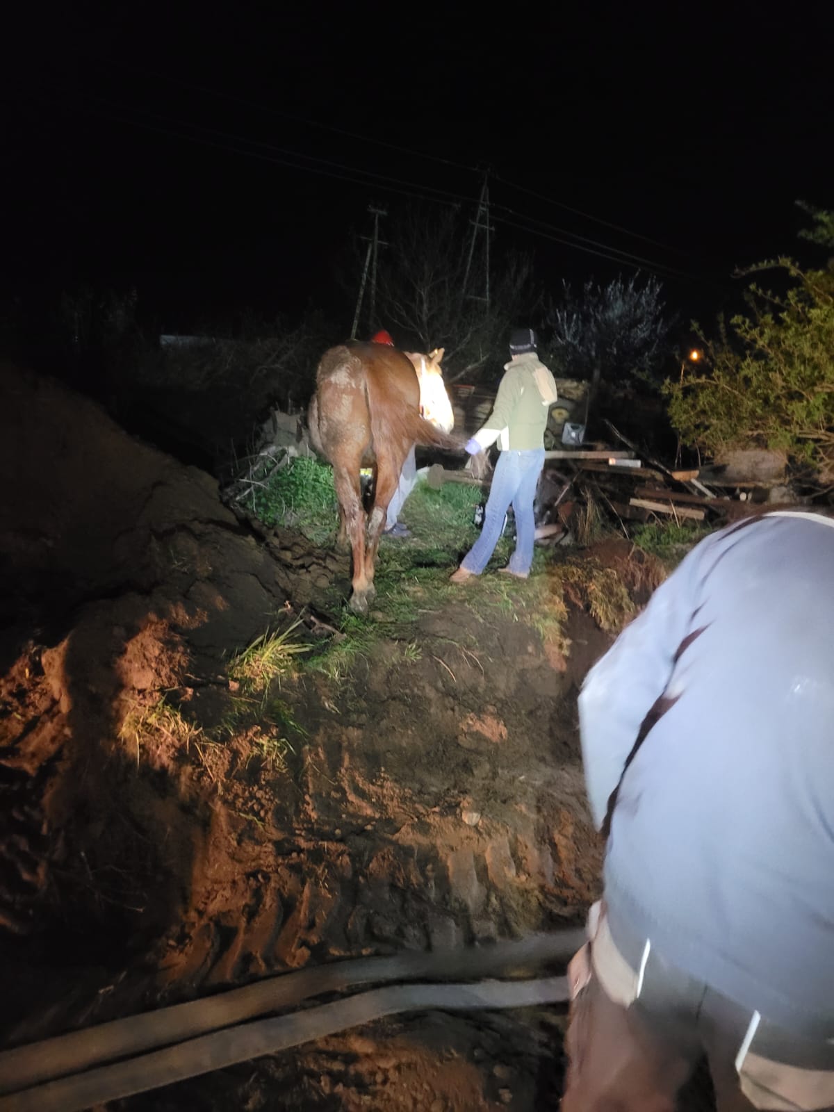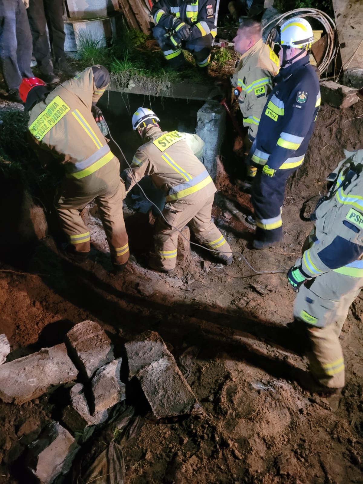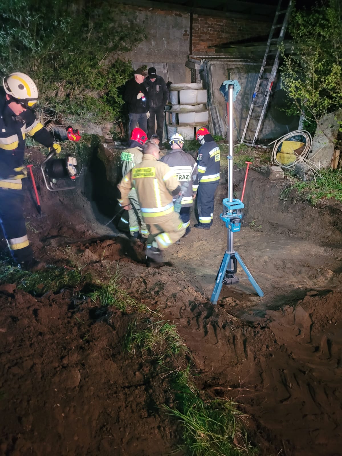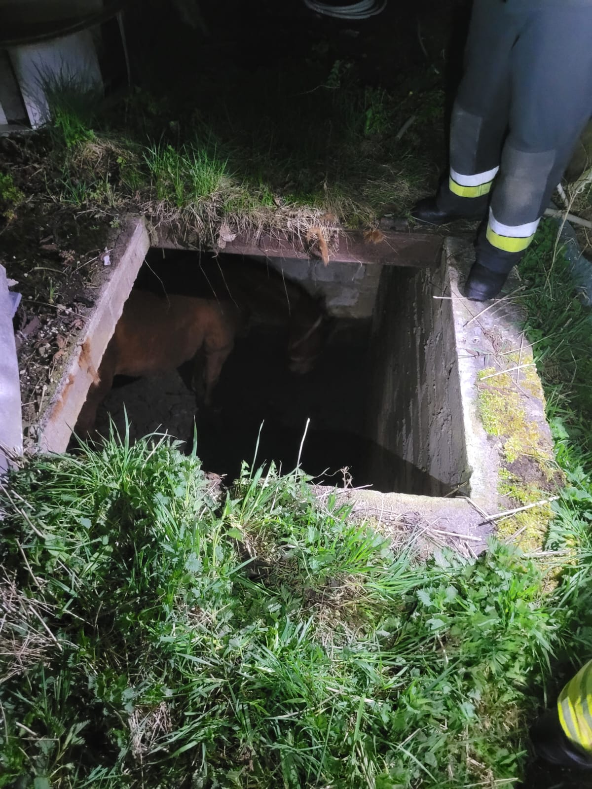 Do niecodziennego zdarzenia doszło we wtorkowy wieczór 25 kwietnia 2023 roku w miejscowości Ślesin. O godz. 20:46 do Stanowiska Kierowania Komendanta Powiatowego Państwowej Straży Pożarnej w Nakle nad Notecią wpłynęło zgłoszenie o uwięzionym koniu w zbiorniku podziemnym. Na miejsce zadysponowano dwa zastępy straży pożarnej. Po przybyciu strażaków na miejsce zdarzenia zastano nieużywany zbiornik na szambo, do którego wpadł koń. Po zabezpieczeniu terenu działań i jego oświetleniu przystąpiono do ewakuacji zwierzęcia. Strażacy przy użyciu ciężkiego sprzętu burzącego oraz koparko-ładowarki prowadzili prace rozbiórkowe ściany zbiornika oraz niwelacji gruntu aby umożliwić wyprowadzenie konia na powierzchnię ziemi. Po trwającej blisko trzy godziny akcji zwierzę udało się bezpiecznie wydostać z pułapki i przekazać przybyłemu na miejsce lekarzowi weterynarii.