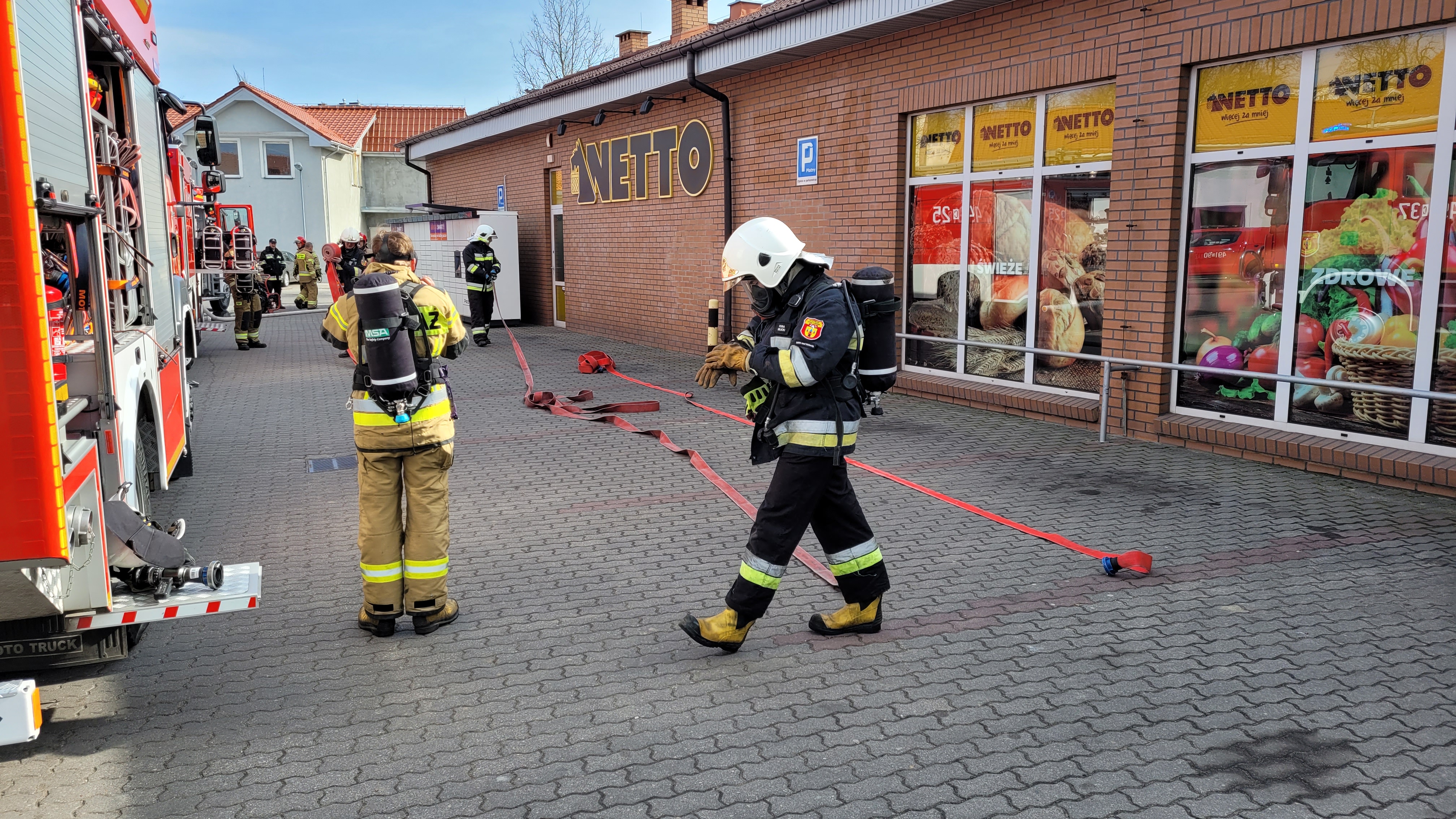 „W dniu 07 kwietnia 2022 po godz. 09.00 do Stanowiska Kierowania Komendanta Powiatowego Państwowej Straży Pożarnej w Nakle nad Notecią wpłynęła informacja o pożarze i silnym zadymieniu w magazynie supermarketu. Ze zgłoszenia wynikało, że wewnątrz przebywają jeszcze pracownicy i klienci.” To wstęp do scenariusza ćwiczeń jakie zostały przeprowadzone z udziałem strażaków z Jednostki Ratowniczo-Gaśniczej PSP z Nakła oraz druhów z Ochotniczej Straży Pożarnej z Nakła. Celem ćwiczeń było doskonalenie umiejętności prowadzenia działań ratowniczo-gaśniczych w obiektach wielkopowierzchniowych. Założenia do ćwiczeń obejmowały m.in. tematykę współdziałania zastępów PSP i OSP w zakresie ewakuacji i podejmowania wobec poszkodowanych medycznych czynności ratunkowych.