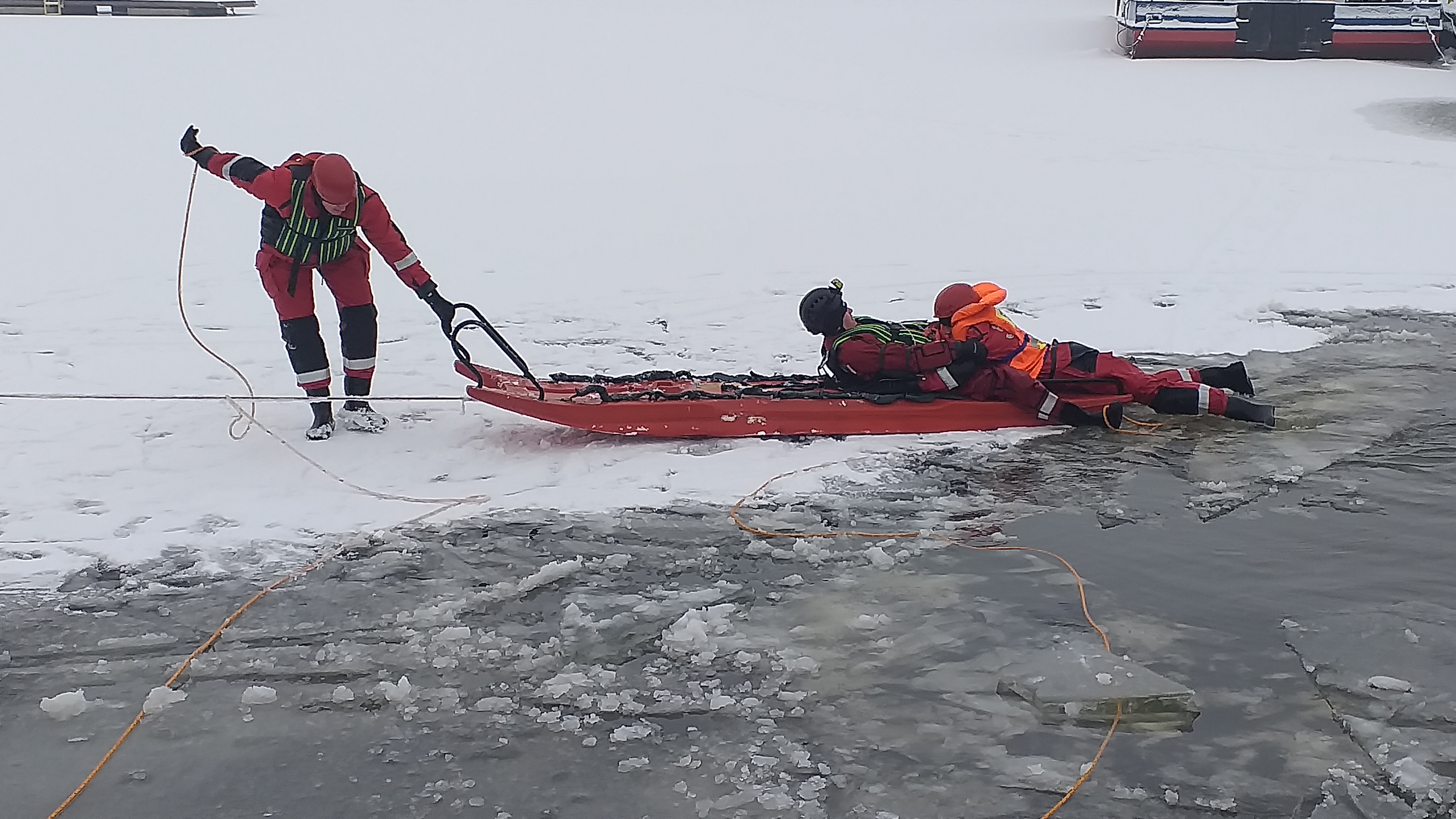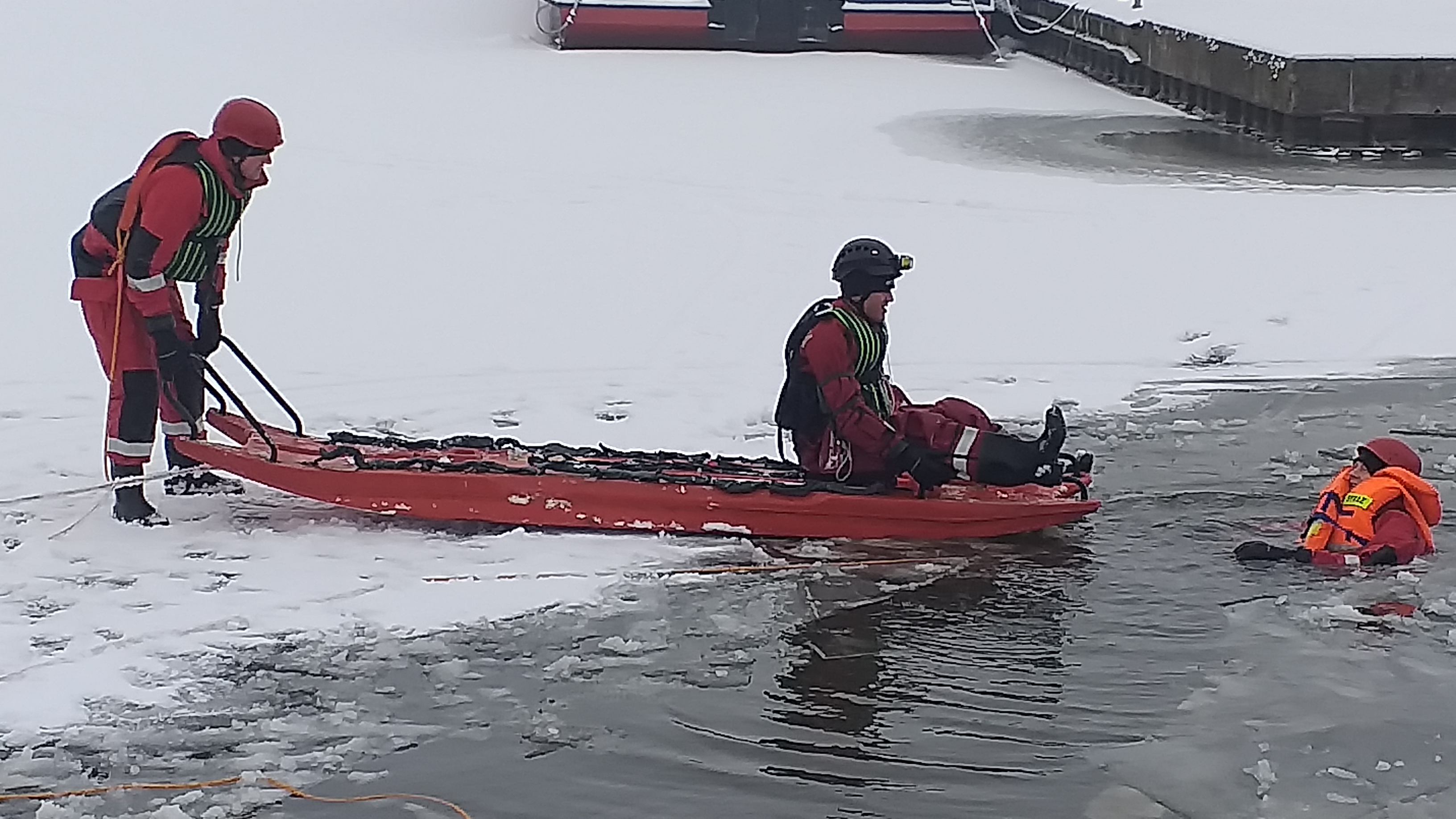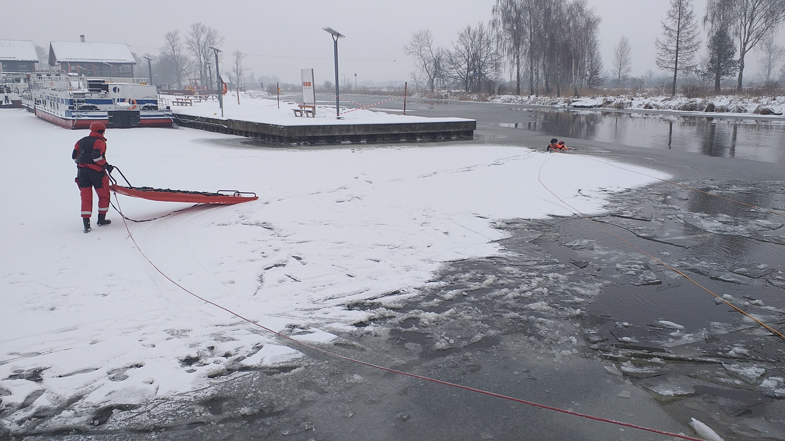 W ramach doskonalenia zawodowego przeprowadzono ćwiczenia w zakresie ratownictwa lodowego.