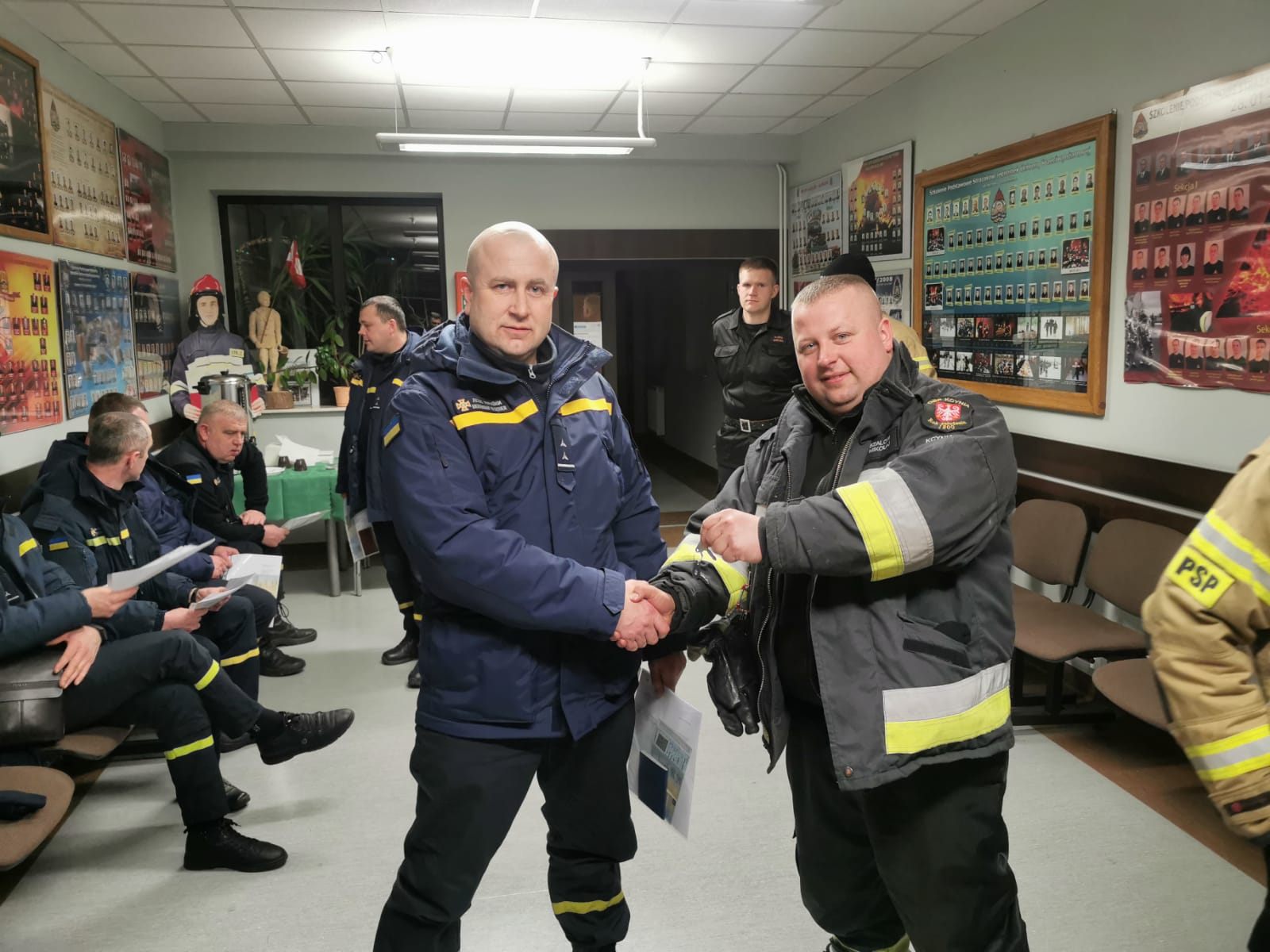 Realizacja podjętych form pomocy do tej pory dotyczyła m.in. transportu osób z punktów recepcyjnych do wskazanych miejsc na terenie Polski jak i dostarczania produktów pierwszej potrzeby do obiektów tymczasowego pobytu. Z inicjatywy Komendanta Głównego PSP zorganizowana została zbiórka sprzętu i pojazdów pożarniczych oraz odzież ochronnej dla ukraińskich strażaków, w którą prężnie włączyły się jednostki PSP i OSP z naszego powiatu.