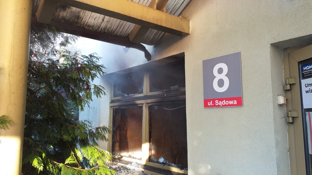 Informacja przekazana w niedzielny poranek dyżurnemu Stanowiska Kierowania Komendanta Powiatowego Państwowej Straży Pożarnej w Nakle dotyczyła silnego zadymienia oraz wydobywających się płomieni z okna budynku Urzędu Skarbowego. Natychmiast zadysponowano cztery zastępy z Jednostki Ratowniczo-Gaśniczej Państwowej Straży Pożarnej z Nakła oraz cztery zastępy z Ochotniczych Straży Pożarnych z terenu gminy Nakło. Po przybyciu na miejsce podjęto działania gaśnicze mające na celu nierozprzestrzenienie się ognia z pomieszczenia portierni znajdującego się na parterze. Panujące bardzo silne zadymienie w całym obiekcie zmusiło strażaków do optymalnego wykorzystania sprzętu ochrony układu oddechowego. Działania gaśnicze prowadzone były przez trzy godziny, a obiekt w ostatniej fazie został przekazany zarządcy.