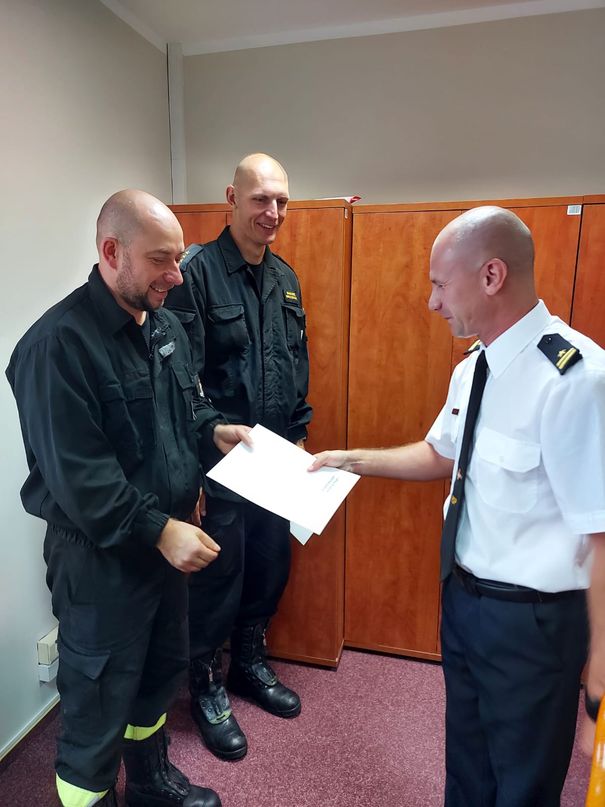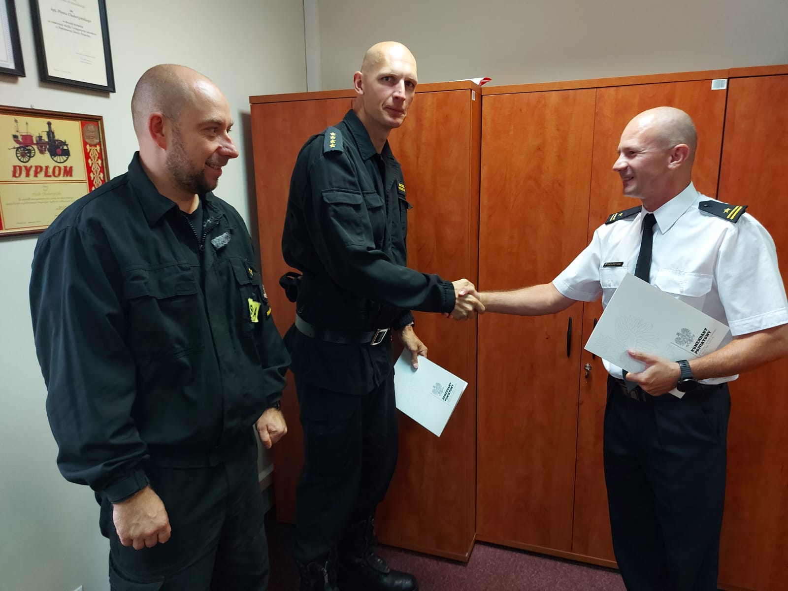 23 sierpnia 2022 roku w siedzibie Komendy Powiatowej PSP w Nakle nad Notecią odbyło się uroczyste wręczenie nagrody jubileuszowej. Z okazji 20-lecia pełnienia służby w Państwowej Straży Pożarnej nagrodę odebrał st.kpt. Bartosz Walkowiak oraz asp.sztab. Marcin Chlebek. W imieniu kierownictwa Komendy Zastępca Komendanta Powiatowego PSP w Nakle mł.bryg. Piotr Cholerzyński w obecności Dowódcy Jednostki Ratowniczo-Gaśniczej PSP w Nakle mł. bryg. Pawła Przybylskiego złożyli gratulacje oraz życzyli funkcjonariuszom satysfakcji podczas dalszego pełnienia służby.