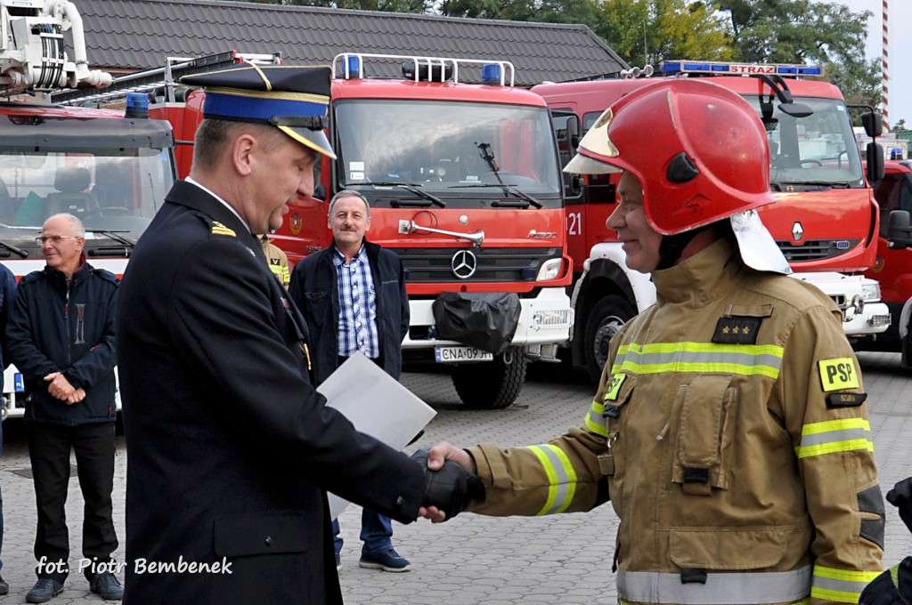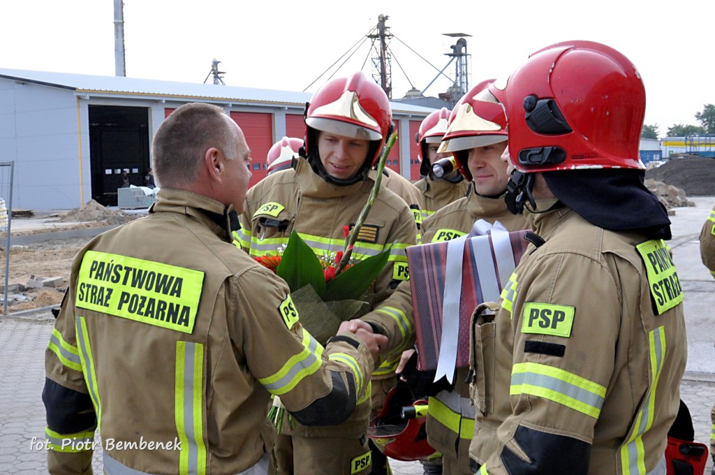 Po odczytaniu decyzji o zwolnieniu ze służby z ust Komendanta Powiatowego PSP w Nakle popłynęły słowa uznania za ratowanie życia, zdrowia i mienia mieszkańców powiatu nakielskiego. Zgromadzeni funkcjonariusze w obecności dowództwa JRG Szubin pod adresem asp. sztab. Andrzeja Ptaszyńskiego złożyli podziękowania za okres służby oraz życzenia wszelkiej pomyślności w życiu osobistym.