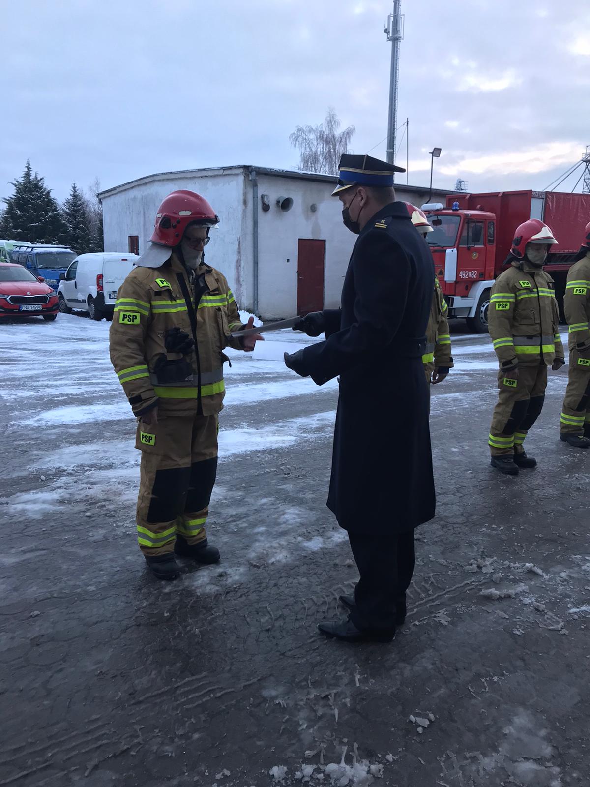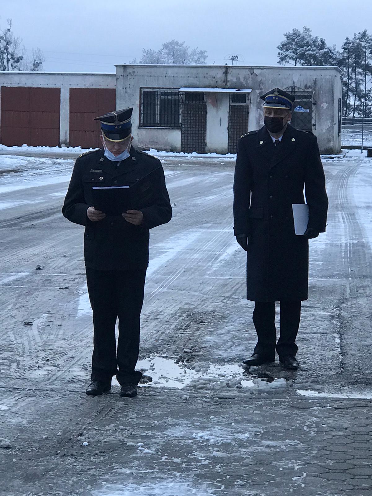 Na zakończenie apelu Komendant Powiatowy PSP w Nakle wręczył akt mianowania od 1 lutego 2021 roku mł. kpt. Marcinowi Gajewskiemu na stanowisko D-cy Zmiany.