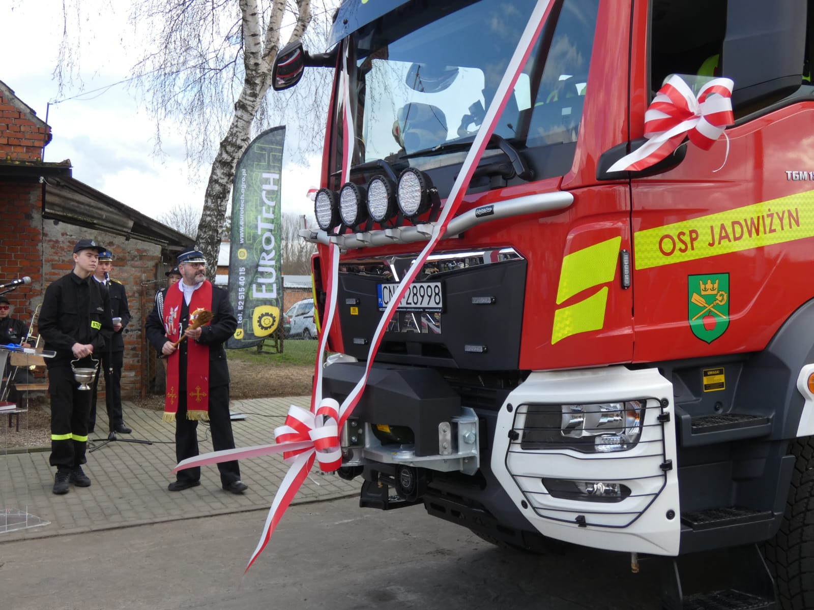 W sobotę 16 marca przy remizie Ochotniczej Straży Pożarnej w Jadwiżynie odbyło się przekazanie i poświęcenie nowego średniego samochodu ratowniczo- gaśniczego GBA 4/28 MAN TGM 18.320 dla tej jednostki. Uroczystość rozpoczęła się przemarszem przez miejscowość przy akompaniamencie Orkiestry Dętej z OSP Kcynia. Na czele korowodu znajdował się zabytkowy wóz konny za którym jechał ustępujący 42 letni Jelcz GCBA 5/32. Akt przekazania na ręce prezesa OSP druha Adama Borzycha złożył Zastępca Kujawsko Pomorskiego Komendanta Wojewódzkiego PSP w Toruniu st. bryg. Marek Rusoń wraz z Komendantem Powiatowym PSP w Nakle nad Notecią st. bryg. Sławomirem Murawskim. Symbolicznego wręczenia kluczyków do nowego samochodu naczelnikowi OSP druhowi Łukaszowi Giczeli i kierowcy OSP druhowi Markowi Borzychowi dokonał Wójt Gminy Sadki Dariusz Gryniewicz, Zastępca Kujawsko Pomorskiego Komendanta Wojewódzkiego PSP w Toruniu st. bryg. Marek Rusoń oraz Wiceprezes Zarządu Oddziału Powiatowego ZOSP RP w Nakle nad Notecią dh Kazimierz Białczyk. Samochód poświęcił proboszcz parafii w Żelaźnie ksiądz Waldemar Indycki.
