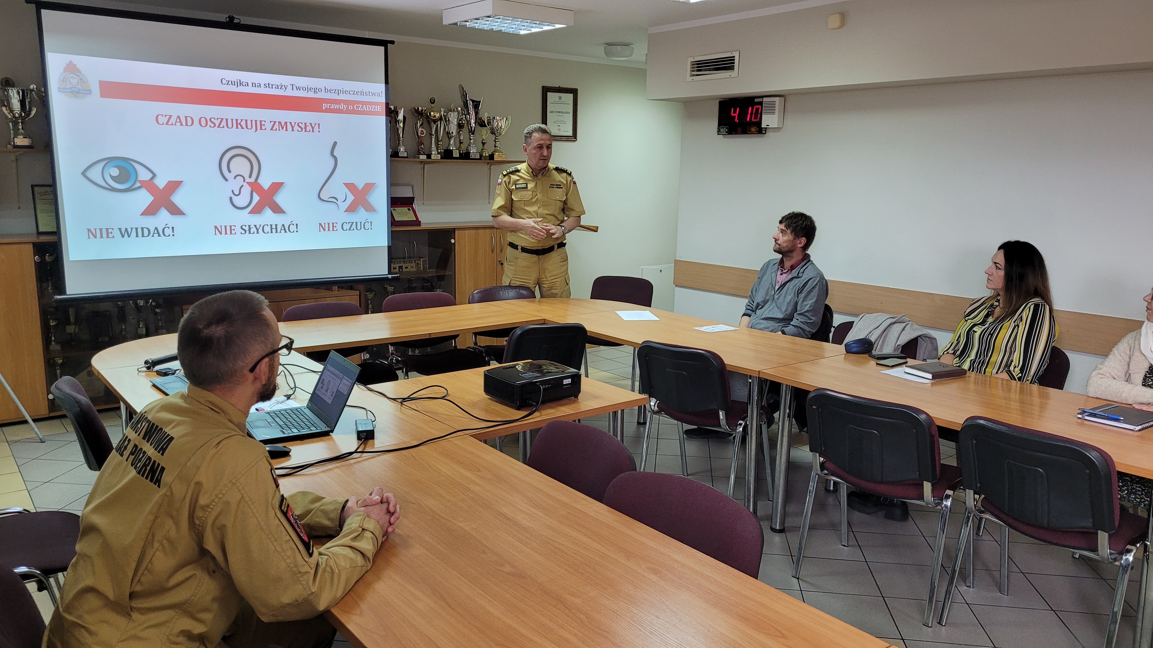 4 października br. w siedzibie Komendy Powiatowej PSP w Nakle nad Notecią zorganizowano spotkanie z przedstawicielami spółdzielni mieszkaniowych, zarządcami i administratorami obiektów mieszkaniowych. Na zaproszenie pozytywnie odpowiedziały również Urzędy Miejsko -Gminne z terenu powiatu nakielskiego oraz Powiatowy Inspektorat Nadzoru Budowlanego. Wszystkich zgromadzonych przywitał Komendant Powiatowy PSP w Nakle nad Notecią st.bryg. Sławomir Murawski. Głównym celem spotkania była wymiana doświadczenia w zakresie bezpieczeństwa pożarowego w domach i budynkach zamieszkania zbiorowego. Poruszono kwestie praw i obowiązków właścicieli i zarządców budynków, czynności zabronionych oraz ogólnych zasad wpływających na podniesienie bezpieczeństwa pożarowego w budynkach. W związku z trwającym od 1 października do 31 marca sezonem grzewczym nie mogło zabraknąć tematyki związanej z prowadzoną corocznie kampanią społeczno-edukacyjną „Czujka na straży twojego bezpieczeństwa”. Przedstawiono cyklicznie występujące zagrożenia ze strony występowania tlenku węgla i pożarów sadzy w przewodach kominowych i tym samym prowadzeniem działań ratowniczo-gaśniczych.