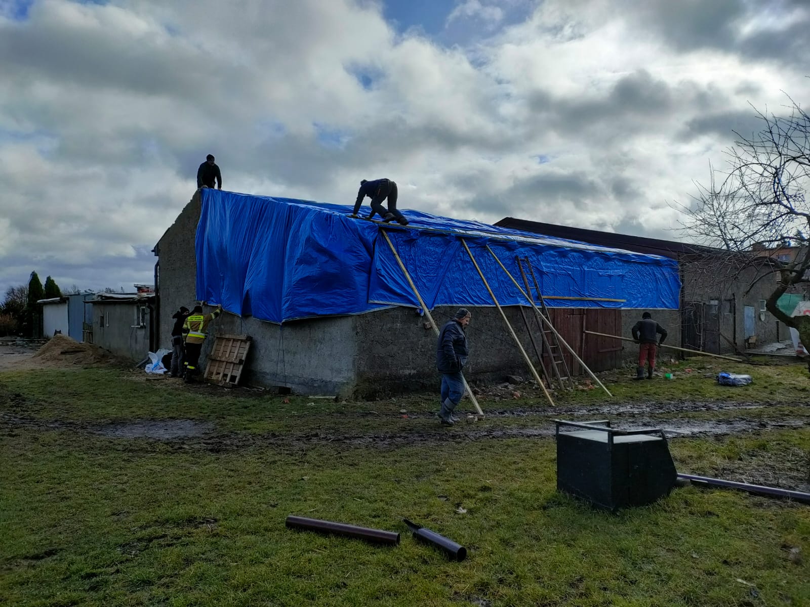 - 8 interwencji dotyczyło zabezpieczenia uszkodzeń dachów budynków mieszkalnych i gospodarczych,