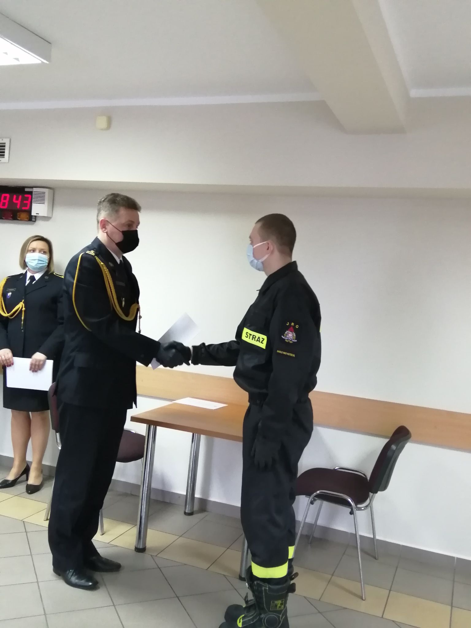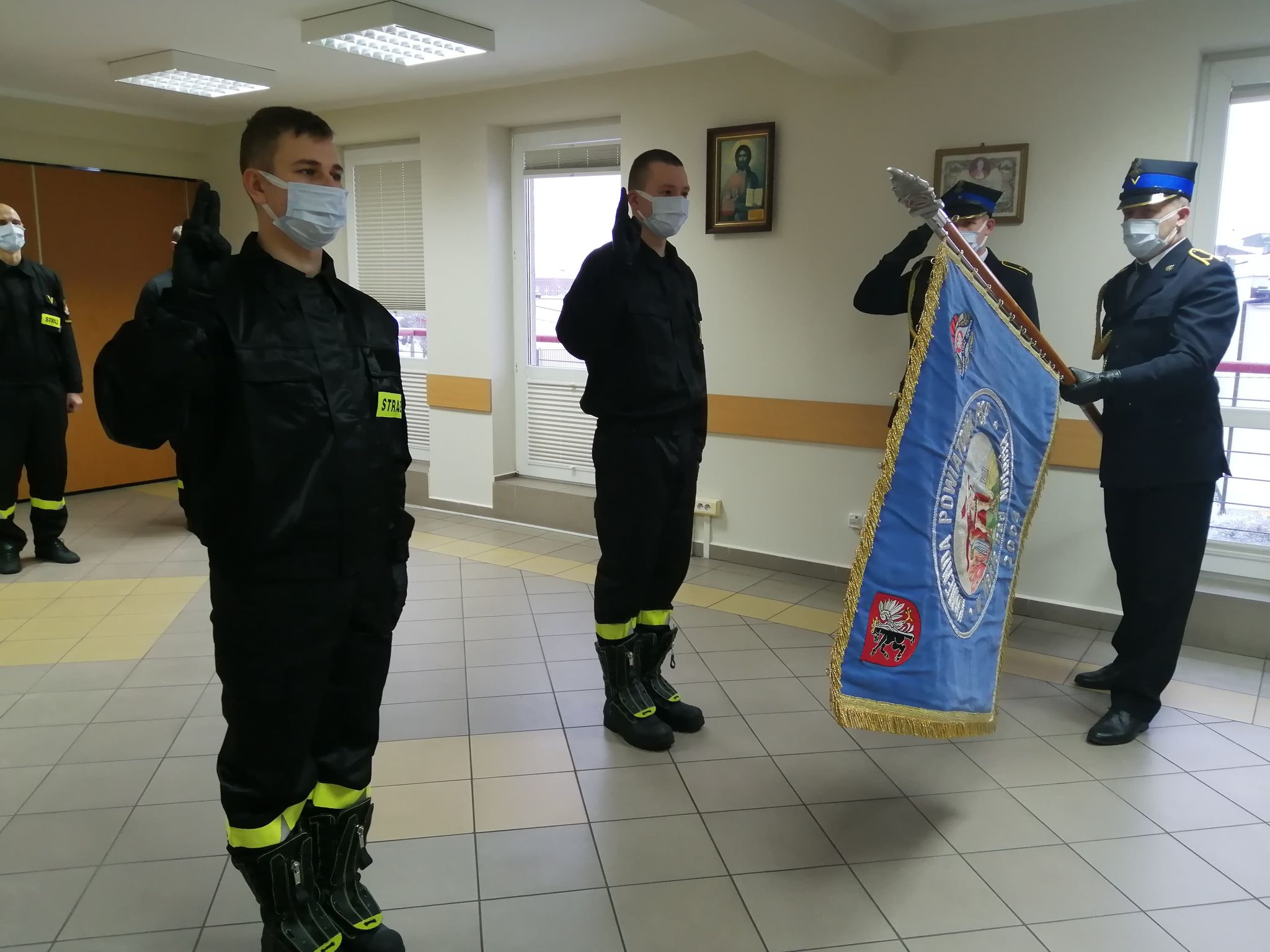 13 stycznia dwaj nowoprzyjęci do służby funkcjonariusze Państwowej Straży Pożarnej złożyli uroczyste ślubowanie. Str. Arkadiusz Krzemiński i str. Łukasz Nowak w grudniu 2020 roku zostali włączeni w szeregi Państwowej Straży Pożarnej, rozpoczynając trzyletni okres służby przygotowawczej.