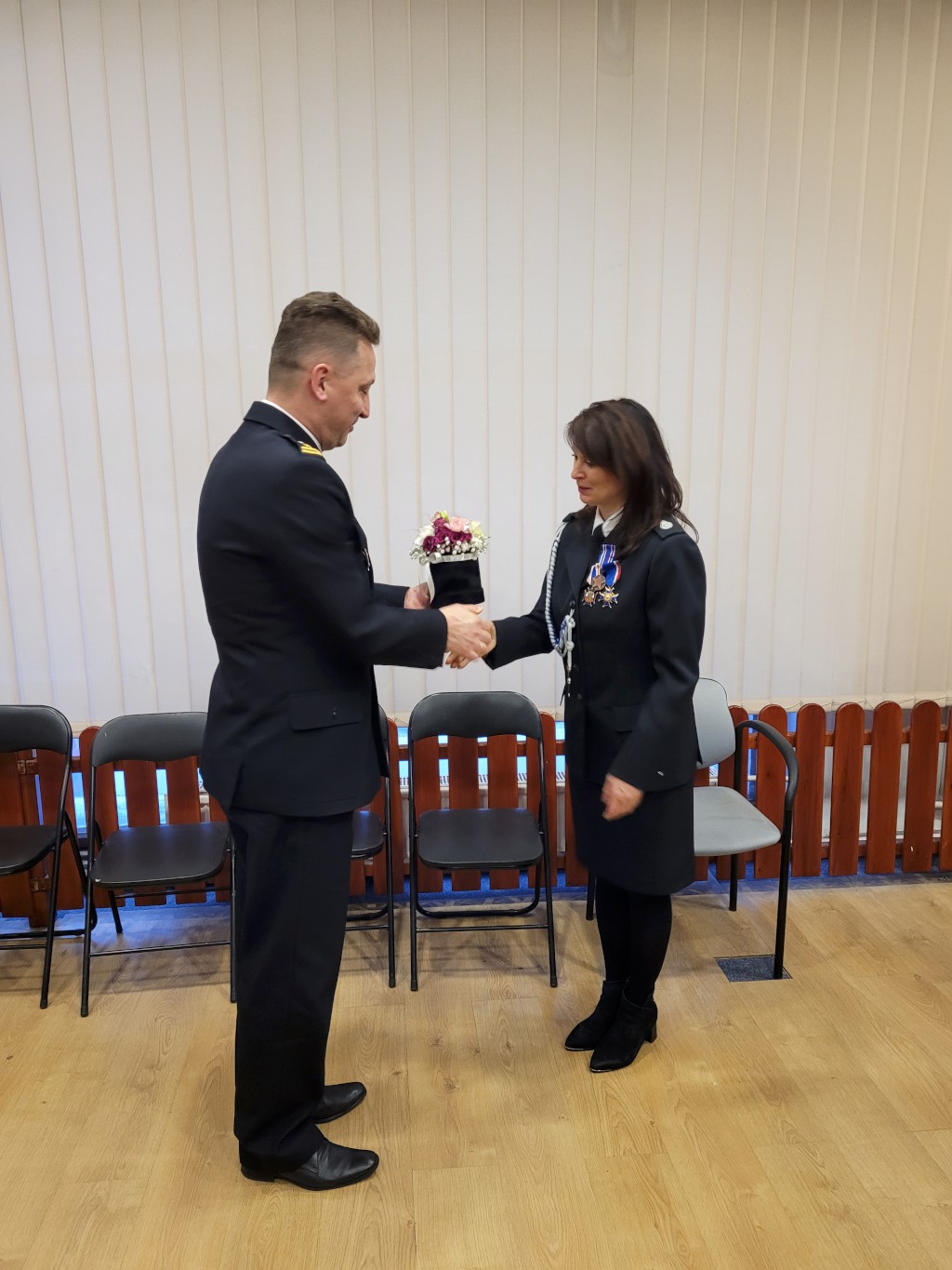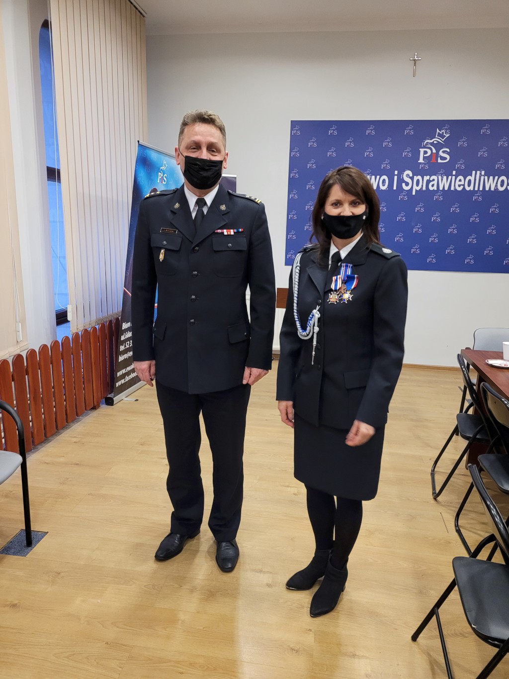 Spotkanie było także okazją do odznaczenia Pani Poseł Złotym Krzyżem i Dyplomem nadanym przez Kapitułę Stowarzyszenia Konfraterni Mazowieckiej Odznaki Świętego Floriana Mazovia za zasługi w realizacji statutowych zadań Stowarzyszenia w dziedzinie upowszechniania służby w Polsce. Odznaczenie to wręczył Wójt Dariusz Gryniewicz. Prezes OSP Sadki druh Piotr Płotka wyróżnił Panią Poseł Odznaką Zasłużony dla Stowarzyszenia Oficerów Więziennictwa. Natomiast Komendant JRS Kowalewko Krzysztof Napieralski wręczył Pani Poseł Ewie Kozaneckiej Złoty Krzyż Zasługi dla JRS.