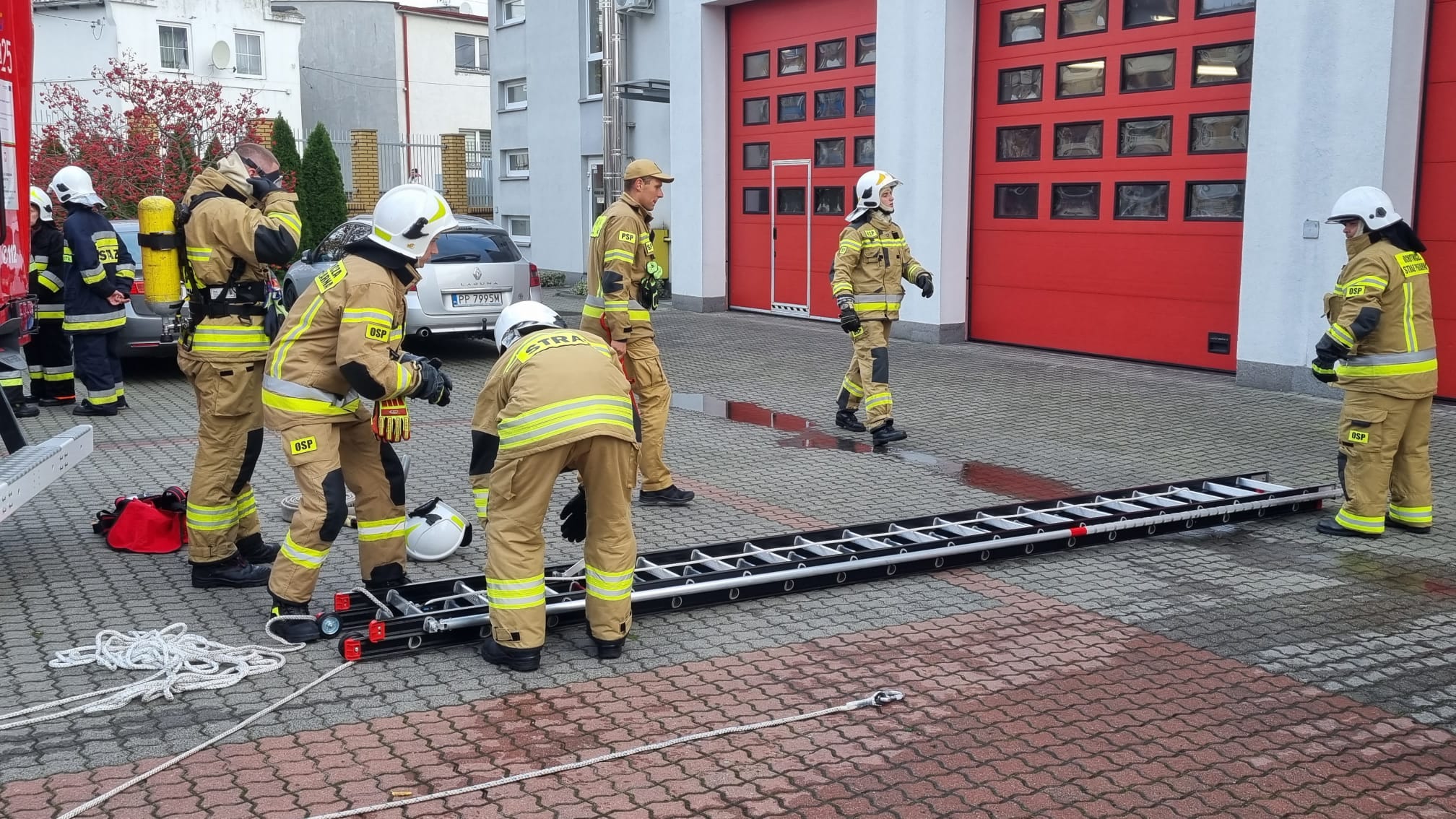 Ponadto, każdy z druhów ukończył pozytywnie test w komorze wysiłkowo-dymowej, który odbył się w dniach 27 oraz 28 października 2024 r. w toruńskiej JRG-3. Sprawdzian w ww. komorze był ostatnim zadaniem, przed zaliczeniem egzaminów, jakie czekało na szkolących się druhów. Zrealizowany test składał się z próby wysiłkowej (bieżnia, ergometr wioślarski, rowerek stacjonarny, drabina „bez końca”) oraz przejścia ścieżki treningowej obfitującej w liczne przeszkody i utrudnienia. Każdy z kursantów zobligowany był zaliczyć ścieżkę treningową w pełnym ubraniu specjalnym oraz w sprzęcie ochrony układu oddechowego.