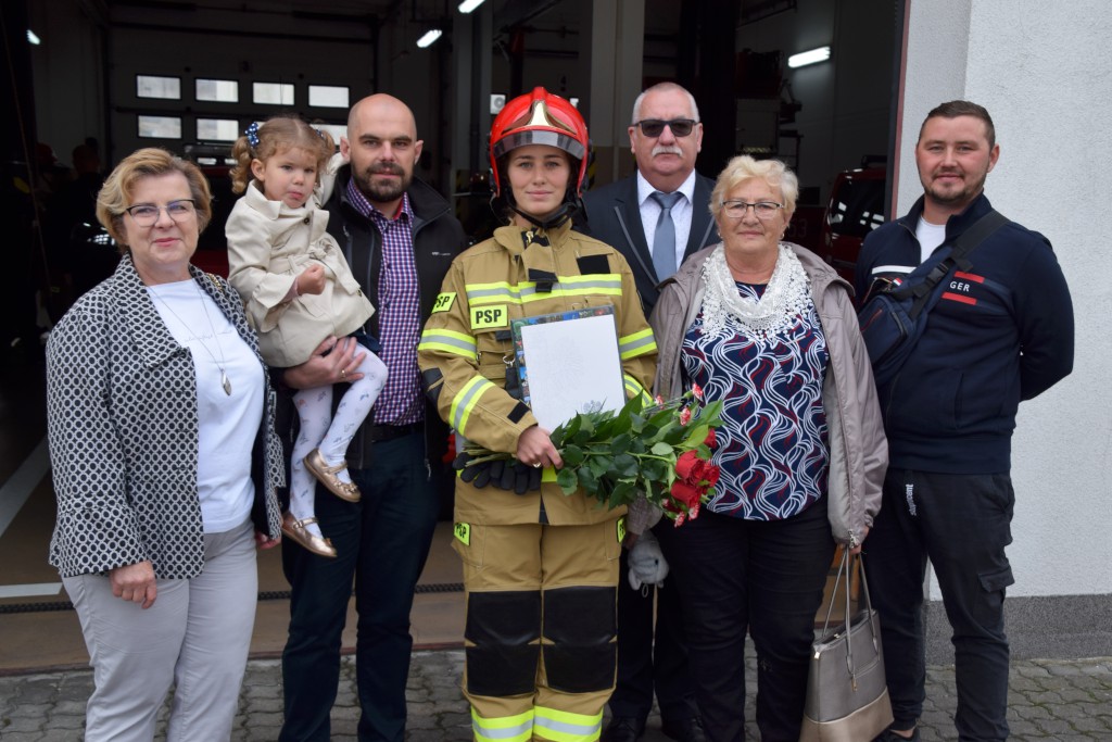 3 września 2021 roku na placu Komendy Powiatowej PSP w Nakle nad Notecią odbyła się uroczystość ślubowania str. Dominiki Matylis, która rozpoczęła służbę w Państwowej Straży Pożarnej. Zgodnie z ceremoniałem pożarniczym ślubowanie przyjął Komendant Powiatowy PSP w Nakle bryg. Sławomir Murawski. Na tę okoliczność przybył również zaproszony starosta powiatu nakielskiego Tadeusz Sobol. Ponadto w apelu uczestniczyli funkcjonariusze Komendy Powiatowej PSP w Nakle wraz z dowództwem Jednostki Ratowniczo-Gaśniczej w Nakle i Szubinie oraz pracownicy cywilni. Nowy funkcjonariusz zasili szeregi Komendy Powiatowej PSP w Nakle w Wydziale Finansów. Pani Dominice życzymy satysfakcji i sukcesów w służbie.