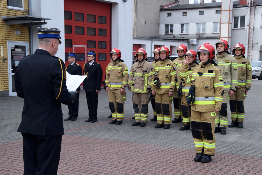 Uroczystość ślubowania strażaka w KP PSP Nakło