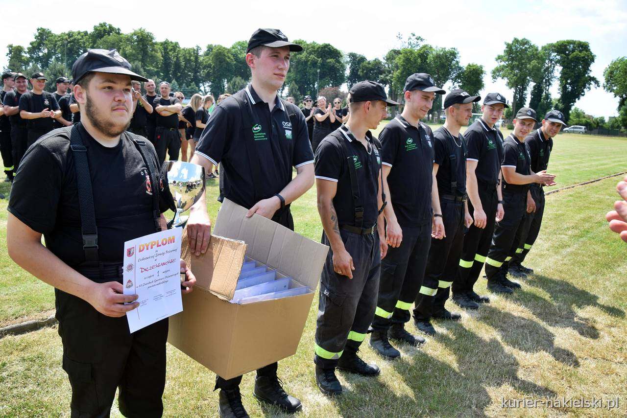 Po uroczystym przekazaniu pojazdu rozpoczęły się powiatowe zawody sportowo-pożarnicze OSP. Z uwagi na pandemię koronawirusa, w ubiegłym roku nie odbyły się zawody gminne, dlatego została podjęta decyzja, że w zawodach wystartują najlepsze drużyny z poszczególnych gmin, które zajęły najwyższe miejsca w zawodach gminnych dwa lata temu. Ostatecznie, w dzisiejszych zawodach wystartowały trzy drużyny kobiece i cztery drużyny męskie. Otwarcia zawodów dokonał Starosta Nakielski Tadeusz Sobol. W klasyfikacji ogólnej liczyły się wyniki dwóch konkurencji: sztafety pożarniczej oraz ćwiczenia bojowego. W trakcie zawodów przeprowadzono również musztrę. Wśród kobiet zwyciężyła drużyna OSP Kcynia, która wyprzedziła OSP Drzewianowo i OSP Ślesin. Wśród mężczyzn po raz trzeci z rzędu wygrała drużyna OSP Drzewianowo, która na stałe wywalczyła puchar przechodni Starosty Nakielskiego. Drugie miejsce zajęła drużyna OSP Jadwiżyn, trzecie OSP Górki Zagajne, a czwarte OSP Polichno. Musztrę wygrała drużyna OSP Jadwiżyn. Zamknięcia zawodów dokonał bryg. Sławomir Murawski – Komendant Powiatowy Państwowej Straży Pożarnej w Nakle nad Notecią. W trakcie zawodów obecny był Zastępca Kujawsko-Pomorskiego Komendanta Wojewódzkiego Państwowej Straży Pożarnej st. bryg. Robert Wiśniewski.