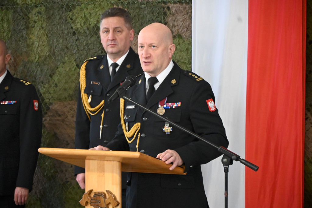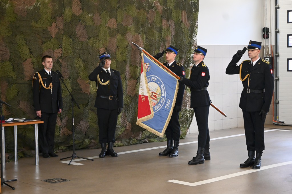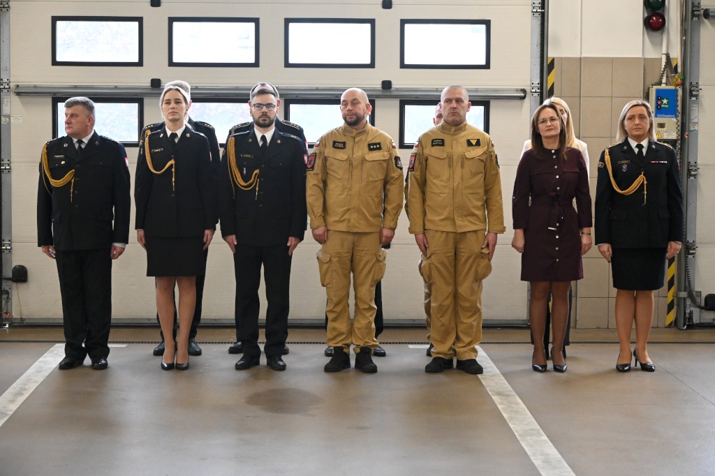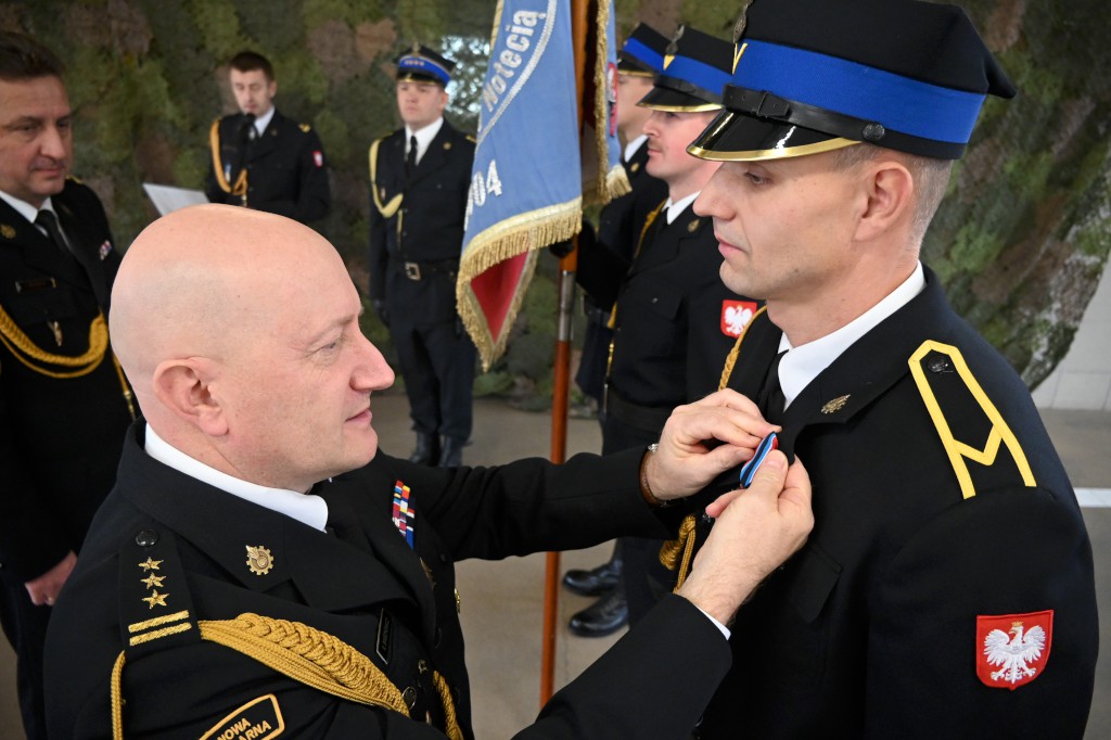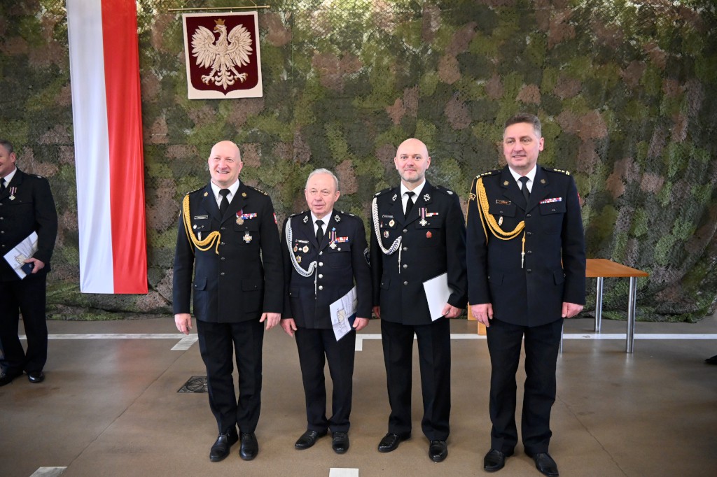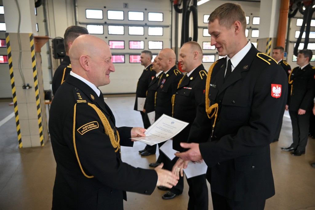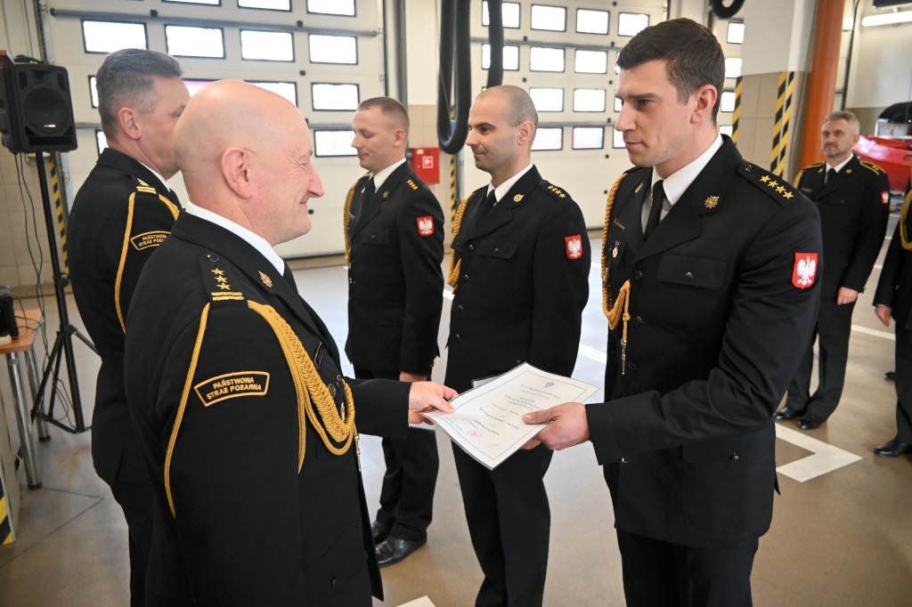 St. bryg. Rafał Świechowicz - Kujawsko-Pomorski Komendant Wojewódzki Państwowej Straży Pożarnej wraz ze st. bryg. Sławomirem Murawskim - Komendantem Powiatowym Państwowej Straży Pożarnej w Nakle nad Notecią w obecności Krzysztofa Błońskiego - Starosty Nakielskiego, wręczyli odznaki „Zasłużony dla Ochrony Przeciwpożarowej” przyznane funkcjonariuszom przez Ministra Spraw Wewnętrznych i Administracji: