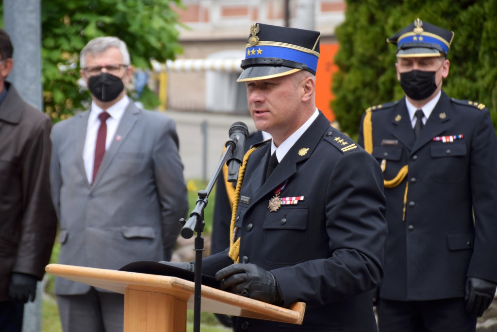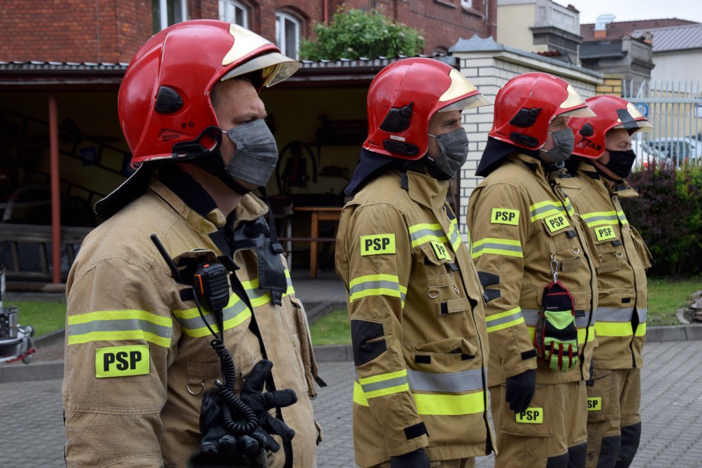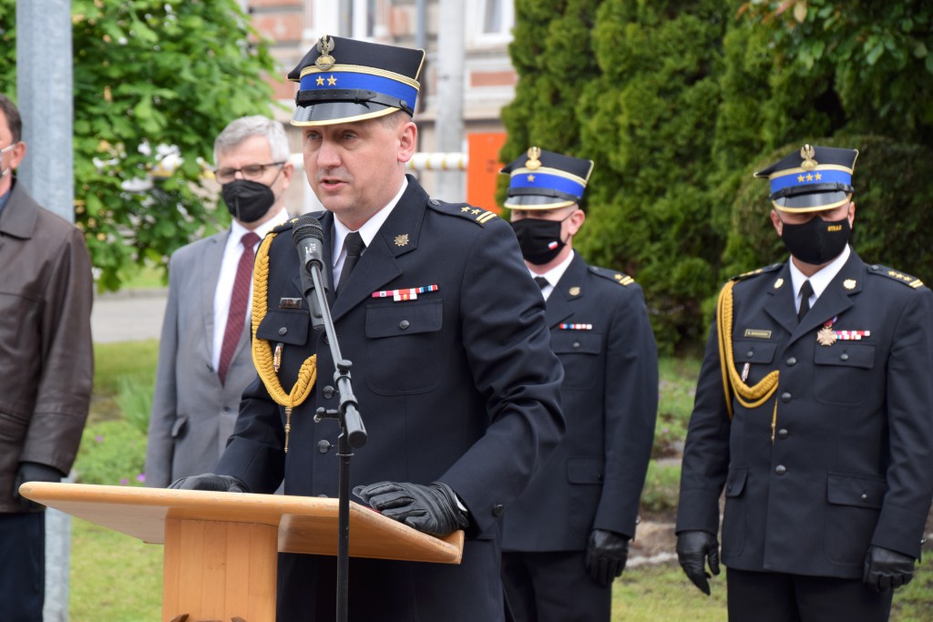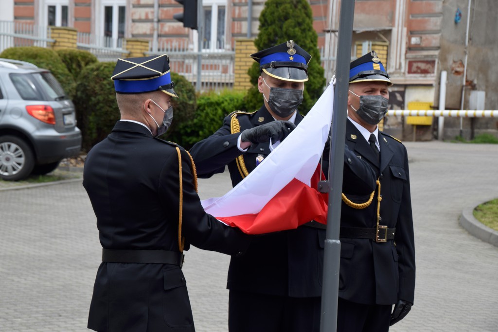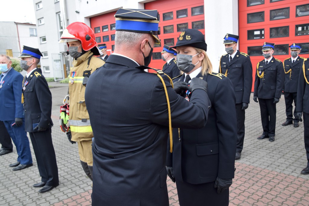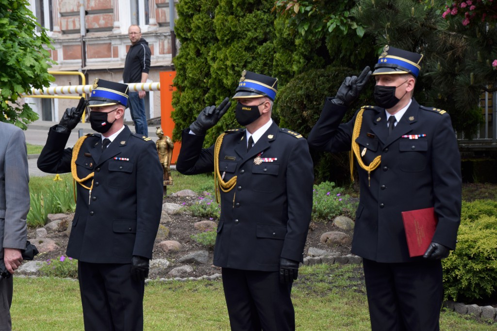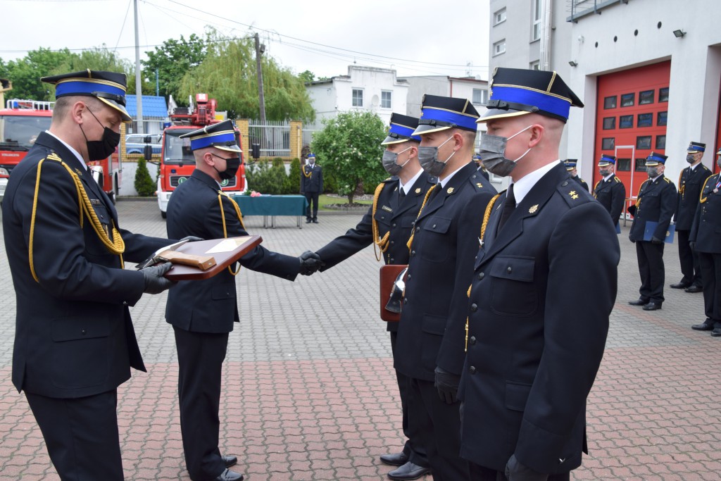 Uhonorowano również funkcjonariuszy, którzy z dniem 4 maja otrzymali pierwsze stopnie oficerskie. Mł. kpt. Mieszko Błasiak, mł. kpt. Maciej Borzych i mł. kpt. Maciej Poraj otrzymali z rąk Komendanta Powiatowego PSP i jego Zastępcy, okolicznościowe grawertony.