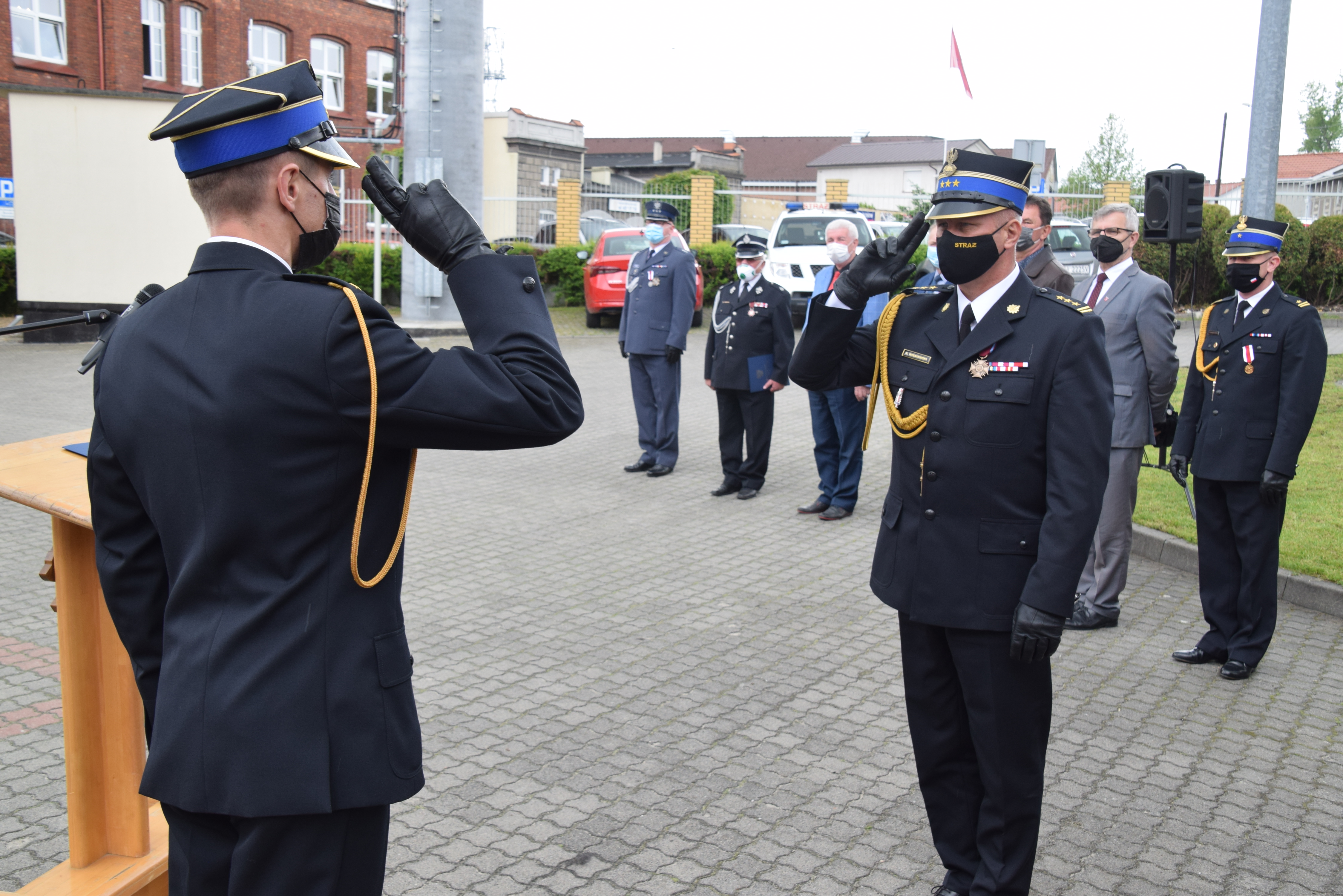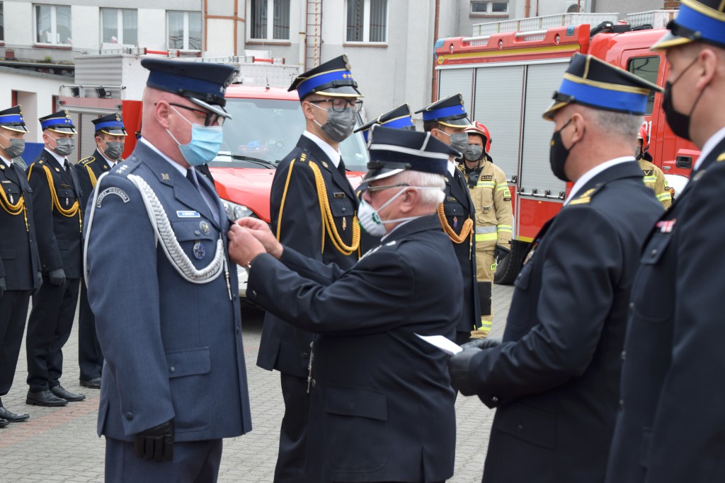 Z uwagi na wynikające ze stanu epidemii ograniczenia, uroczystości miały skromny charakter i – oprócz zmiany służbowej oraz odznaczonych i awansowanych funkcjonariuszy – udział w nich wzięli zaproszeni goście: st. bryg. Robert Wiśniewski – Zastępca Kujawsko – Pomorskiego Komendanta Wojewódzkiego Państwowej Straży Pożarnej, Tadeusz Sobol – Starosta Nakielski, Tomasz Miłowski – V-ce Starosta Nakielski oraz dh Stefan Kubicki – Prezes Zarządu Oddziału Powiatowego Związku Ochotniczych Straży Pożarnych RP w Nakle nad Notecią