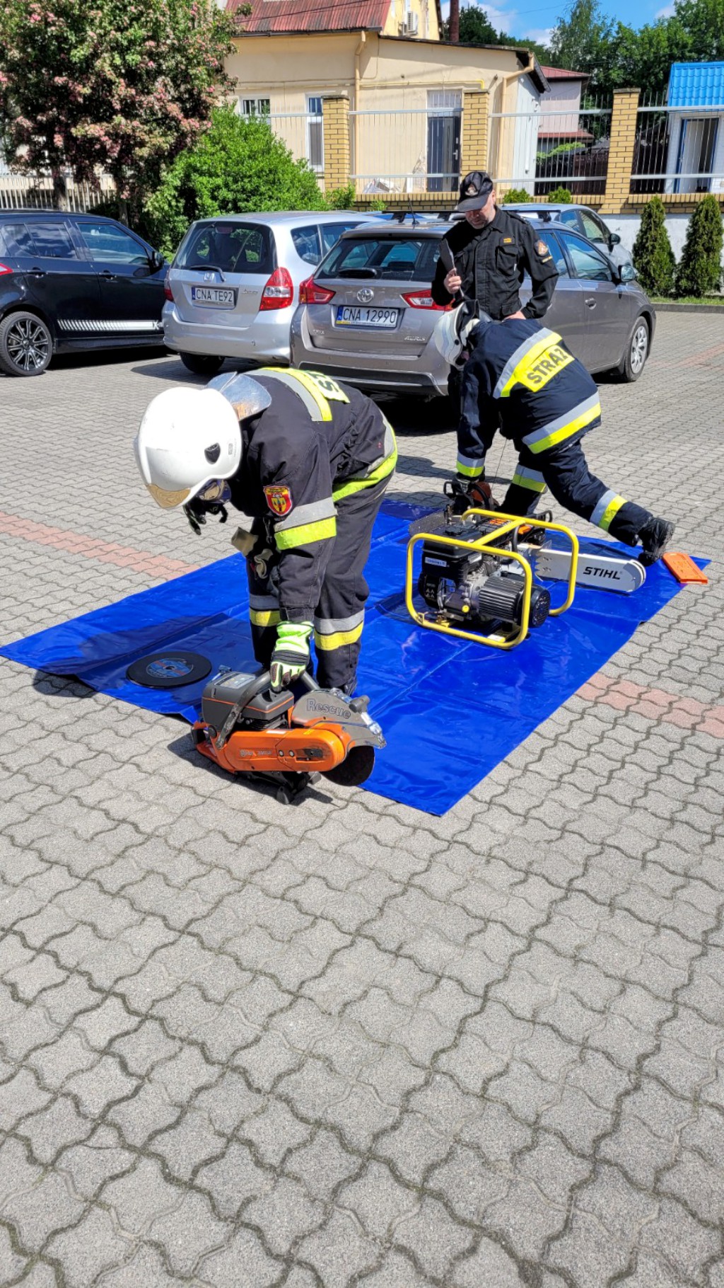 Swoją cegiełkę w realizację w/w szkolenia dołożyła firma „Moto-Centrum Szubin Stanisław Zieliński” użyczając wraki pojazdów, na potrzeby działań ze specjalistycznym sprzętem hydraulicznym.