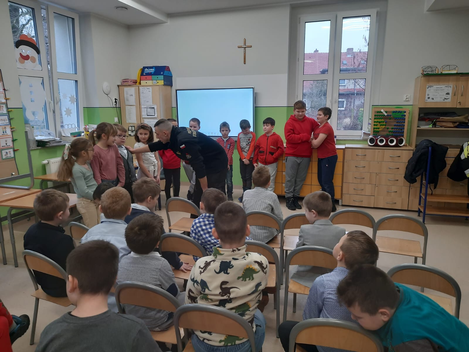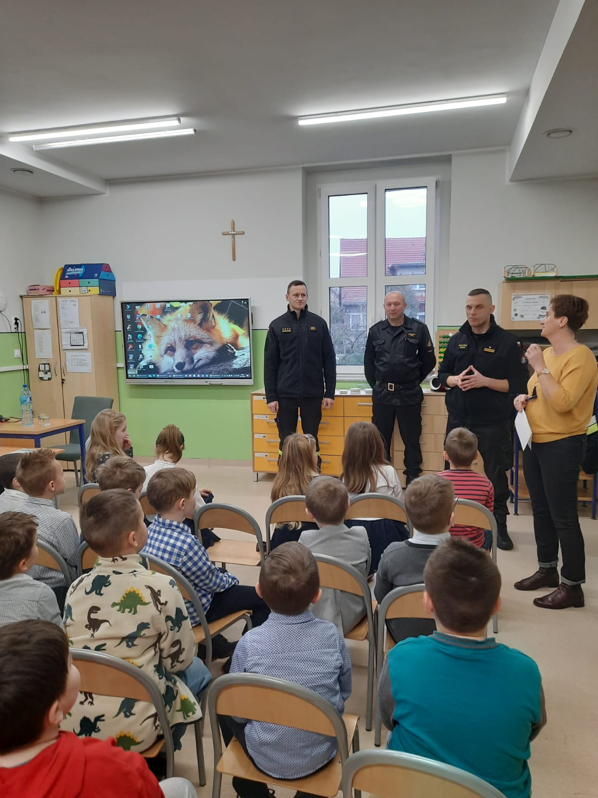 W dniu 24 stycznia 2023 roku strażacy z Komendy Powiatowej PSP w Namysłowie przeprowadzili w Szkole Podstawowej Nr 5 w Namysłowie instruktaż z zakresu zasad bezpieczeństwa jakie powinny przestrzegać dzieci podczas ferii. W czasie spotkania uczniowie przybliżyli sobie zagrożenia jakie mogą je spotkać podczas zimowego wypoczynku w domu i poza nim. W sposób szczególny w formie krótkiego przedstawienia, w którym główne role odgrały dzieci przedstawione zostały im zagrożenia ze strony tlenku węgla, sposób jego powstawania, mechanizm zatrucia oraz metody prewencji w tym zakresie.