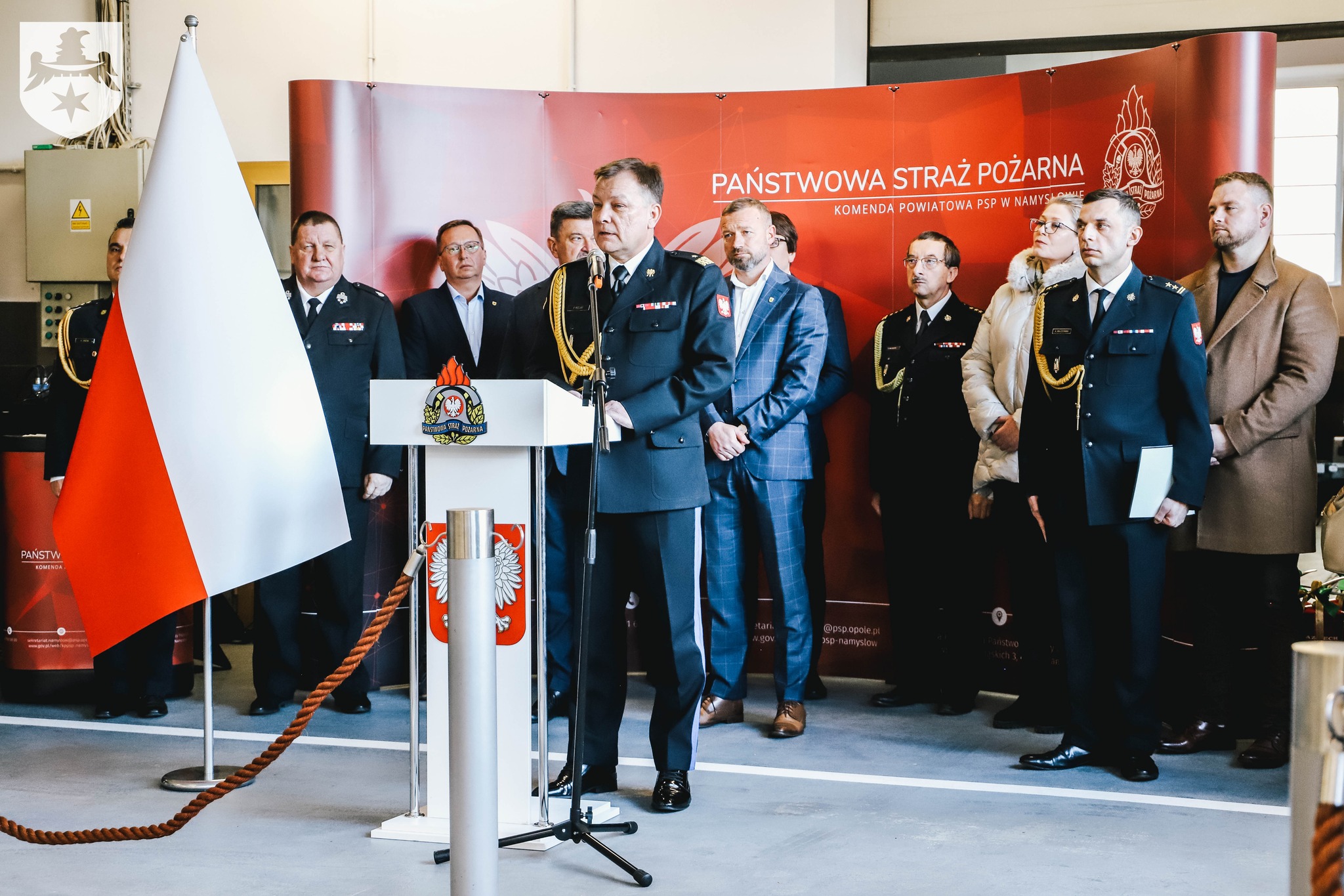 W dniu 15 grudnia 2025 r. w Komendzie Powiatowej Państwowej Straży Pożarnej w Namysłowie odbyło się uroczyste przekazanie pojazdów pożarniczych oraz specjalistycznego sprzętu dla Komendy Powiatowej PSP w Namysłowie oraz Ochotniczych Straży Pożarnych w Brzozowcu, Głuszynie i Ligocie Książęcej.