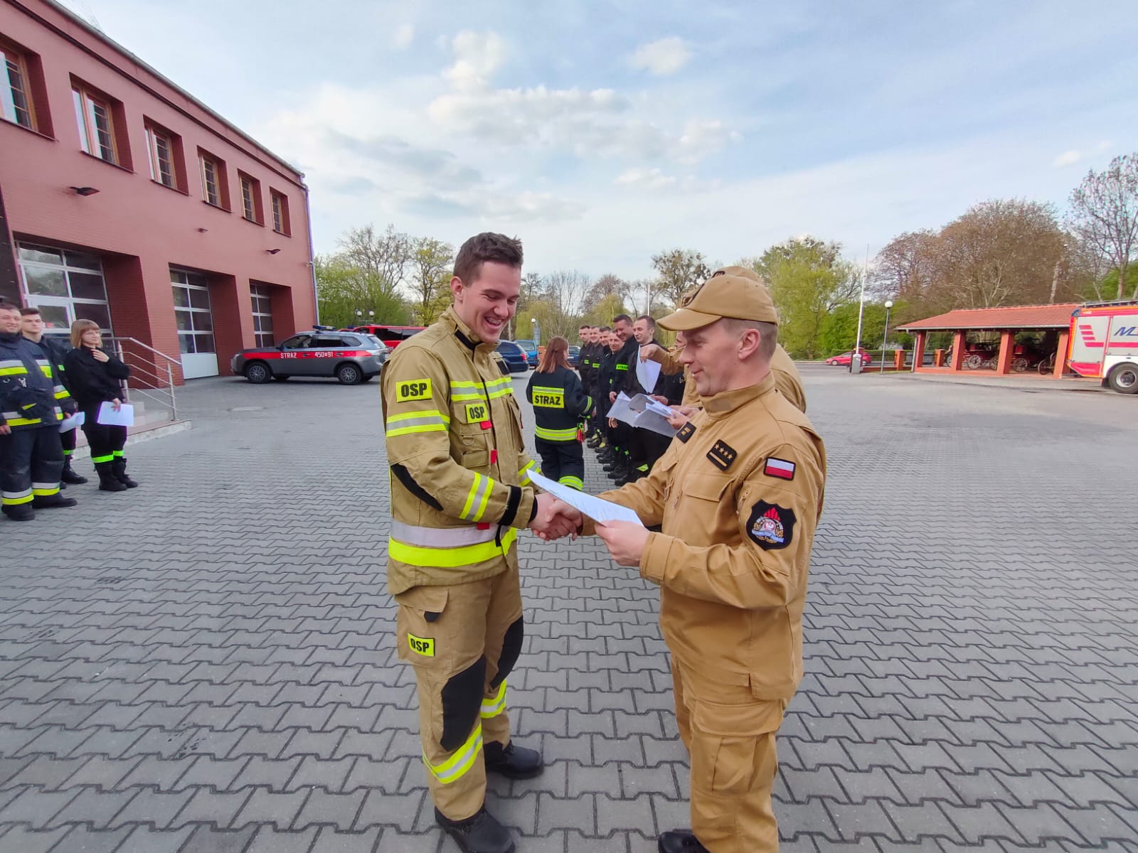 28 kwietnia br. w Komendzie Powiatowej Państwowej Straży Pożarnej w Namysłowie poprzez wręczenie zaświadczeń absolwentom kursu dokonano uroczystego zakończenia szkolenia podstawowego dla strażaków-ratowników Ochotniczych Straży Pożarnych z terenu powiatu namysłowskiego.