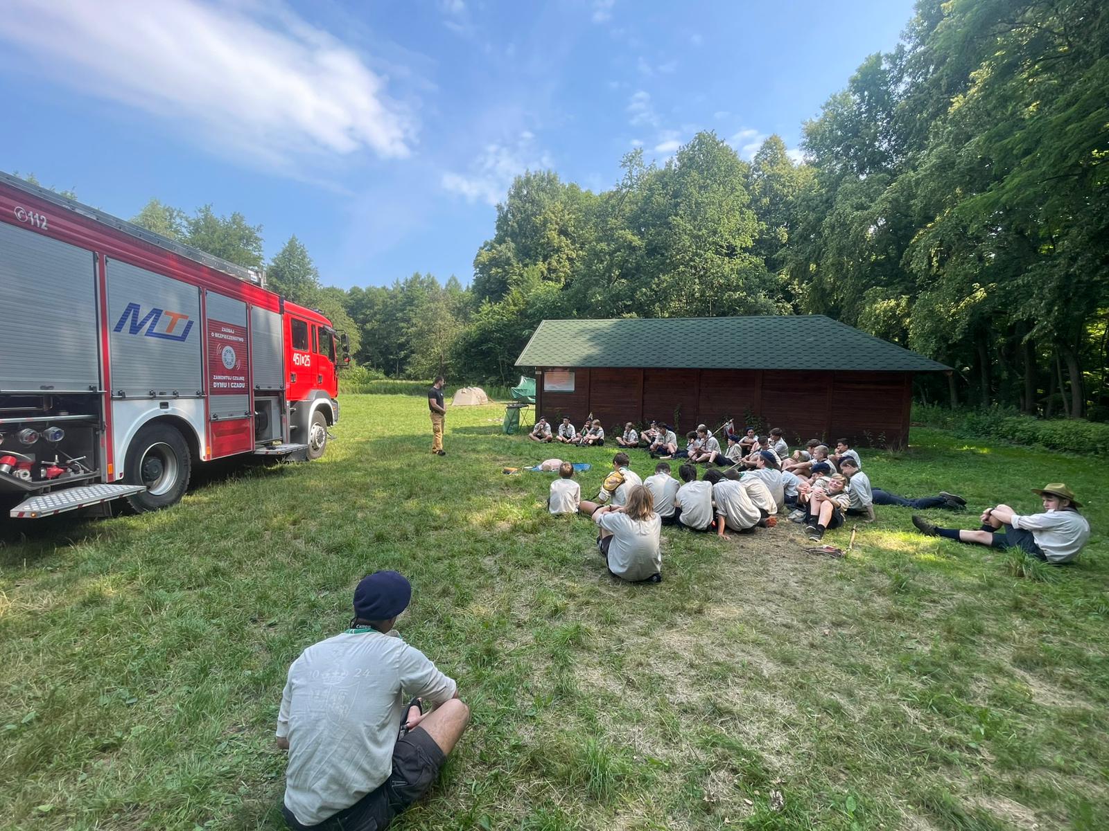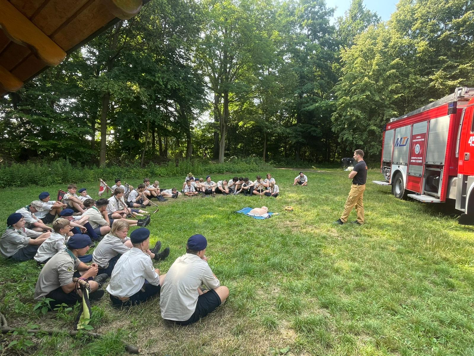 W dniach 9 lipca 2025 roku funkcjonariusze Komendy Powiatowej Państwowej Straży Pożarnej w Namysłowie, Ochotniczej Straży Pożarnej w Pokoju wraz z gospodarzem terenu Panią Wójt Barbarą Zając i przedstawicielami Policji wizytowali rozpoczęcie obozu Skautów Europy 1 Hufca Jeleniogórsko-legnickiego.