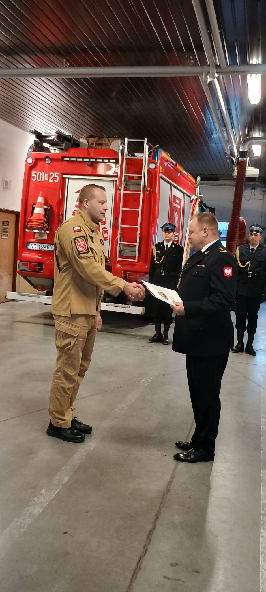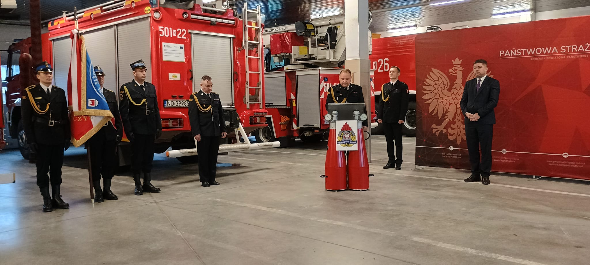 Komendant Powiatowy PSP w Nidzicy st.bryg. Jarosław Skalski pogratulował wszystkim awansowanym i wyróżnionym, podkreślając ich profesjonalizm oraz nieustanne zaangażowanie w służbie. Wyraził także wdzięczność całemu zespołowi za codzienną gotowość do niesienia pomocy w sytuacjach zagrożenia życia i mienia.