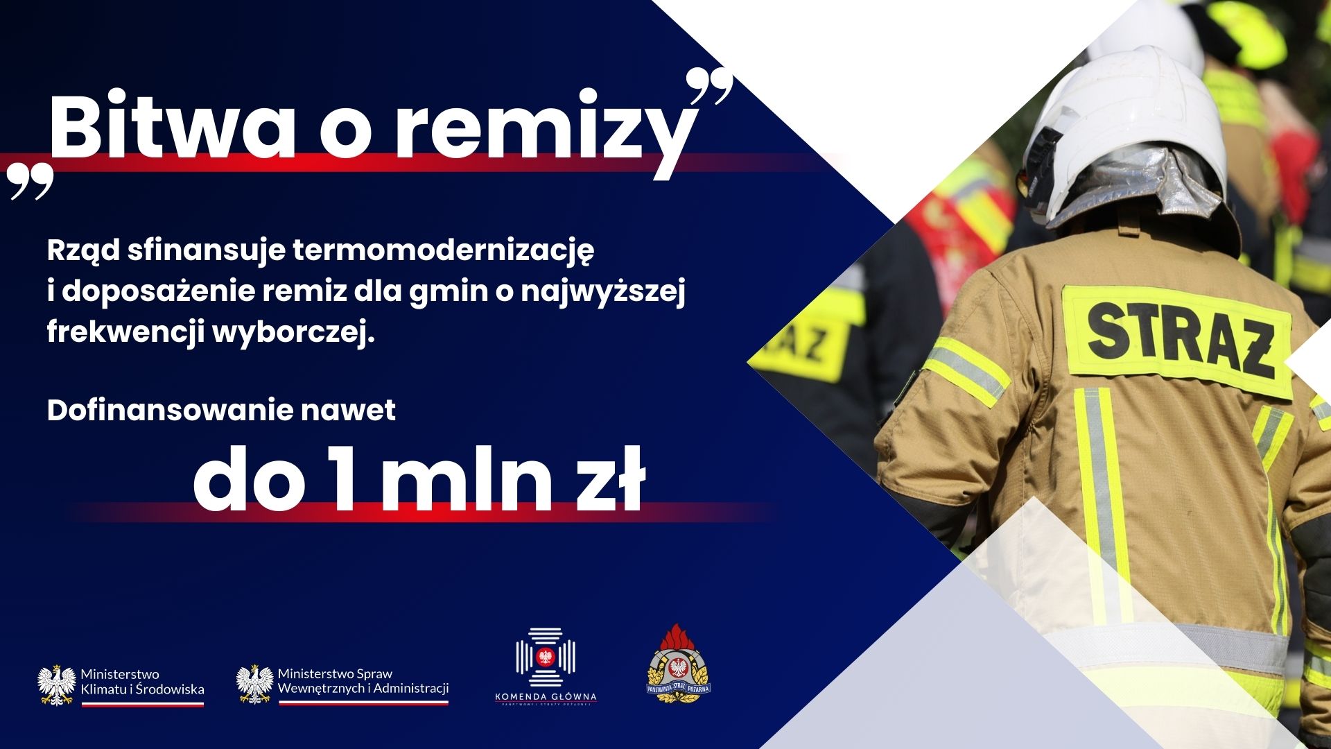#BITWAoREMIZY – w każdym powiecie (z wyłączeniem miast na prawach powiatu) gmina do 20 tys. mieszkańców z największą frekwencją w wyborach do Sejmu i Senatu, otrzyma do 1 miliona złotych dotacji na termomodernizację, remont i wyposażenie remizy strażackiej.