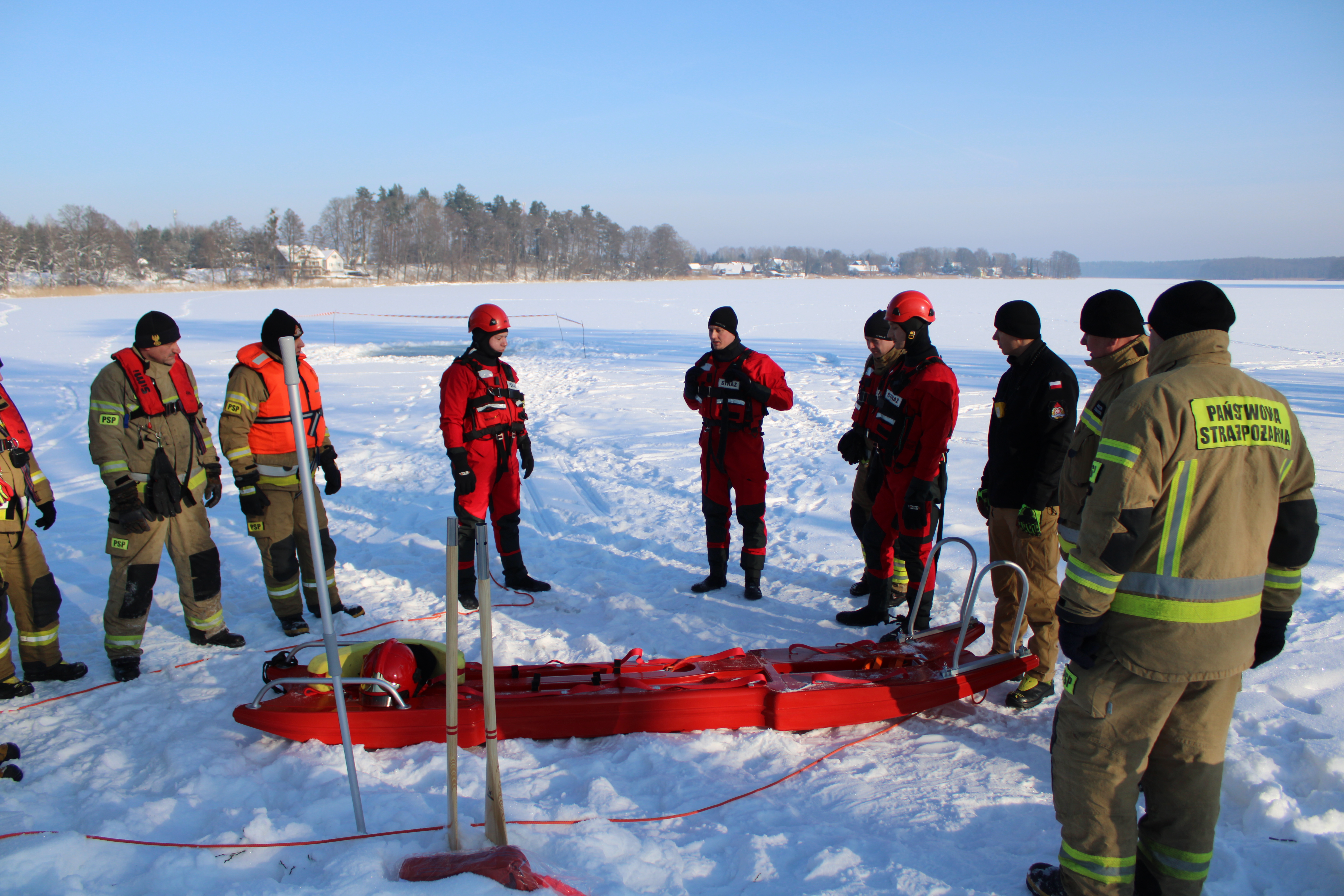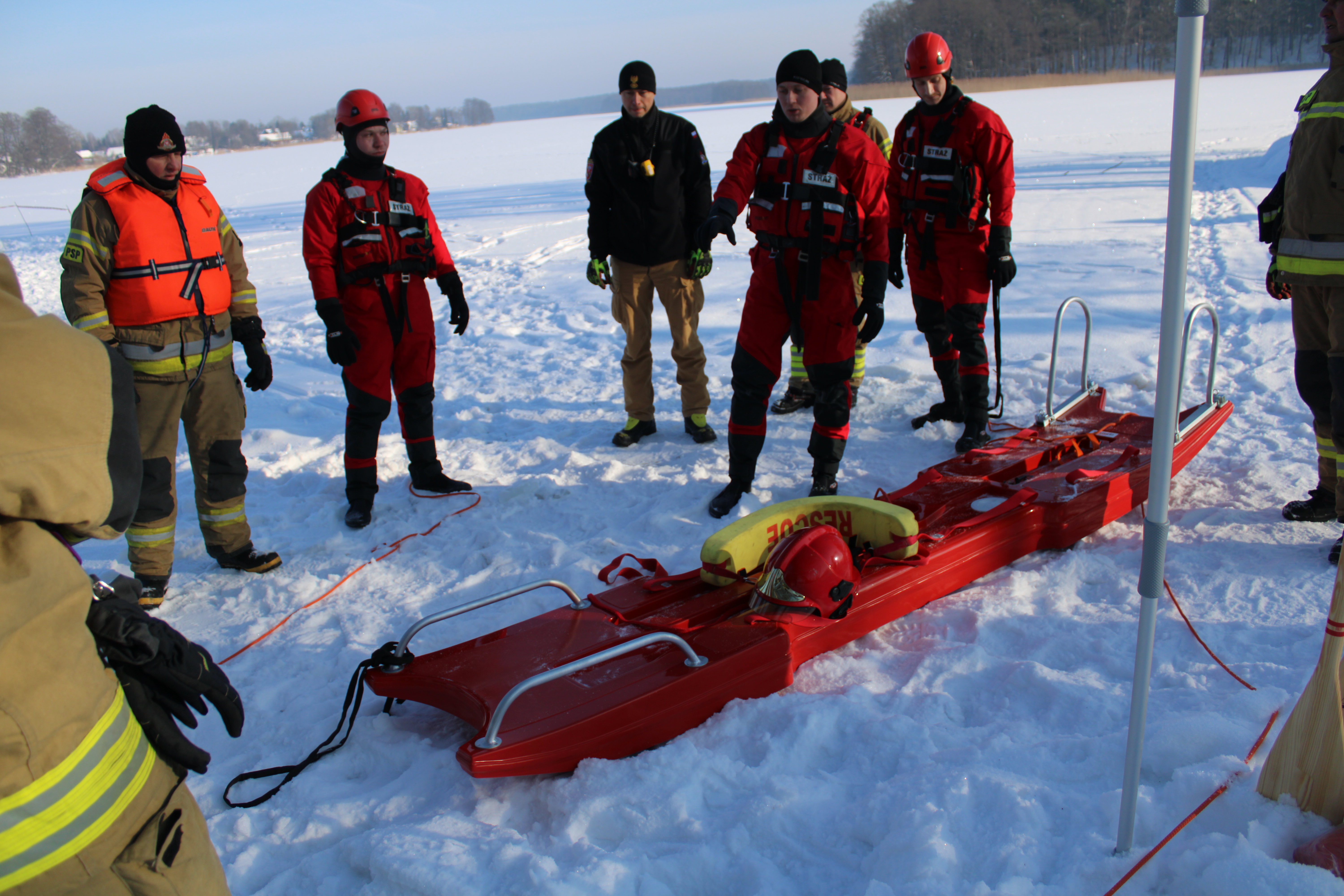 Strażacy doskonalili umiejętności poruszania się po lodzie, metody asekuracji oraz sposoby szybkiego i bezpiecznego dotarcia do poszkodowanych przy wykorzystaniu sprzętu ratowniczego jak sanie lodowe, liny asekuracyjne oraz kombinezony wypornościowe. Wspólne ćwiczenia były okazją do wymiany doświadczeń, a także oceny możliwości udzielenia pomocy również przy wykorzystaniu innego sprzętu, jak lina, drabina czy deska ortopedyczna.