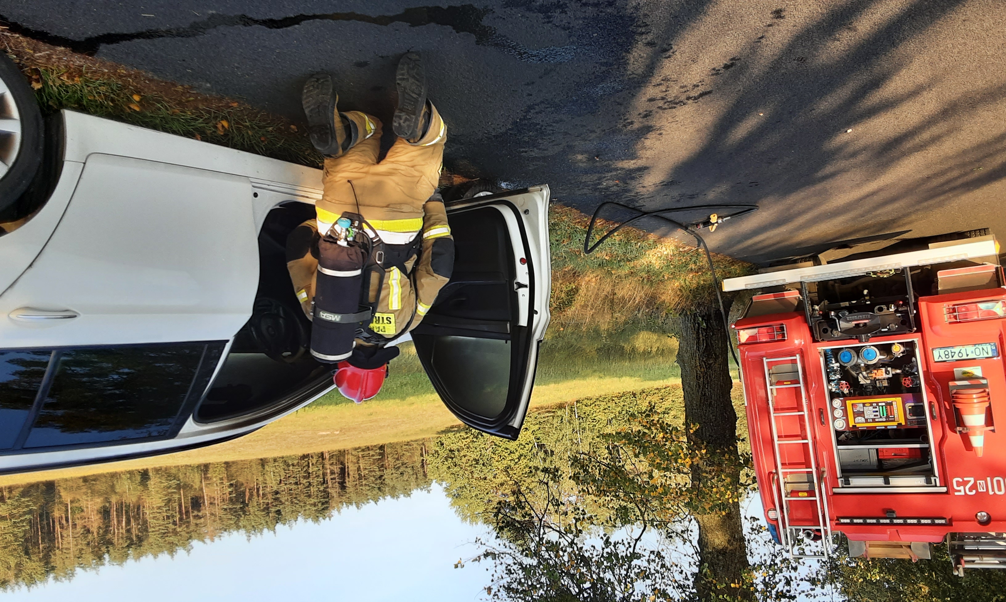Strażacy z JRG w Nidzicy, którzy pojawili się na miejscu po kilkunastu minutach zastali samochód marki BMW stojący na poboczu drogi powiatowej. W pobliżu znajdował się kierowca, który po zauważeniu pożaru przygasił ogień przy wykorzystaniu gaśnicy proszkowej. Ratownicy po dotarciu na miejsce odłączyli napięcie w pojeździe oraz dogasili tląca się instalację elektryczną. W wyniku pożaru spaliła się deska rozdzielcza z kierownicą oraz wyposażeniem i elementami instalacji elektrycznej, a także elementy foteli i podsufitki znajdujące się wewnątrz samochodu. Na szczęście zagrożenie związane z pożarem zostało szybko opanowane i nie wiązało się z innym zdarzeniem komunikacyjnym. Natomiast kierowca dzięki przytomnej reakcji oraz sprawnej gaśnicy nie doznał dodatkowych obrażeń.