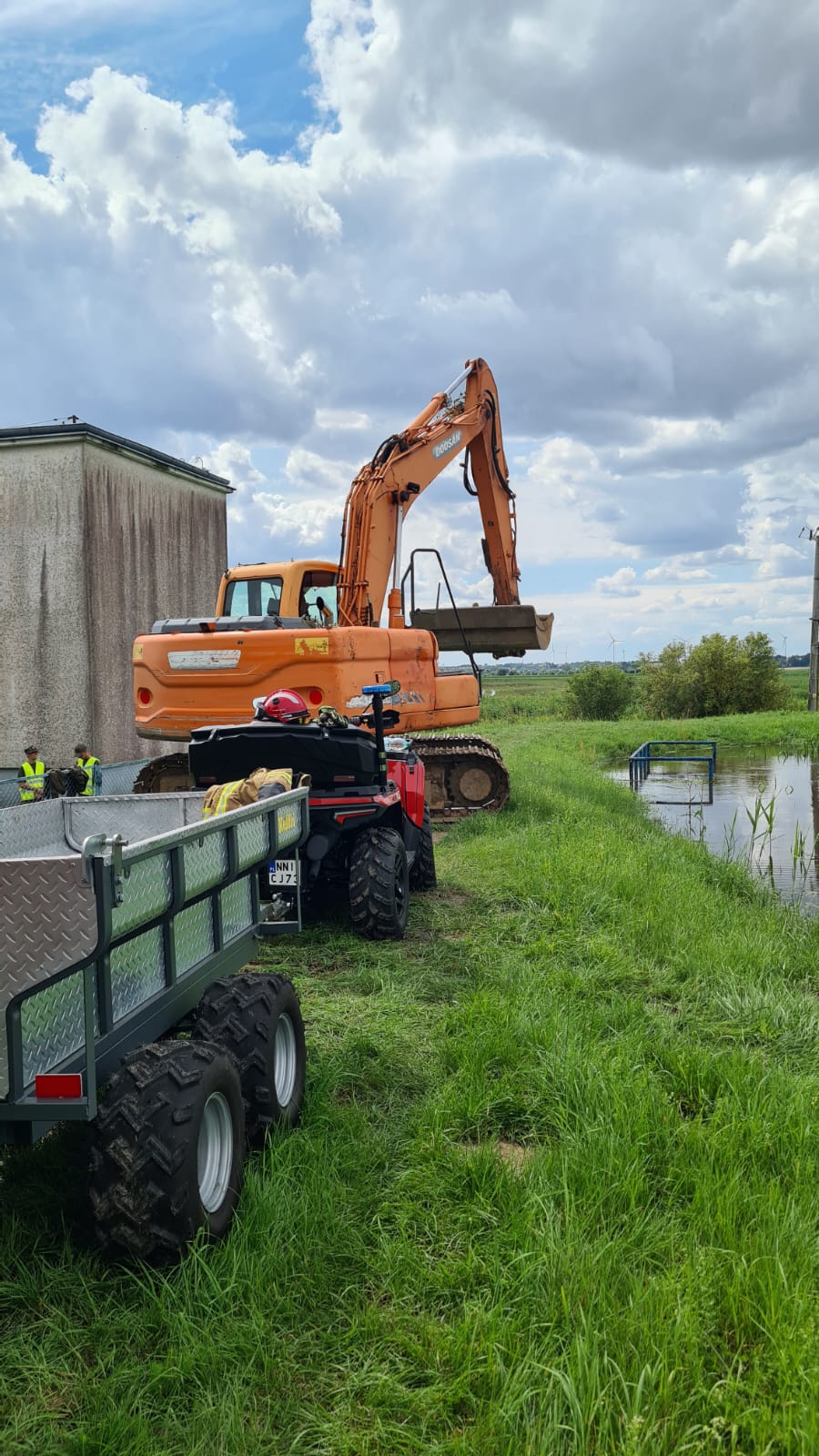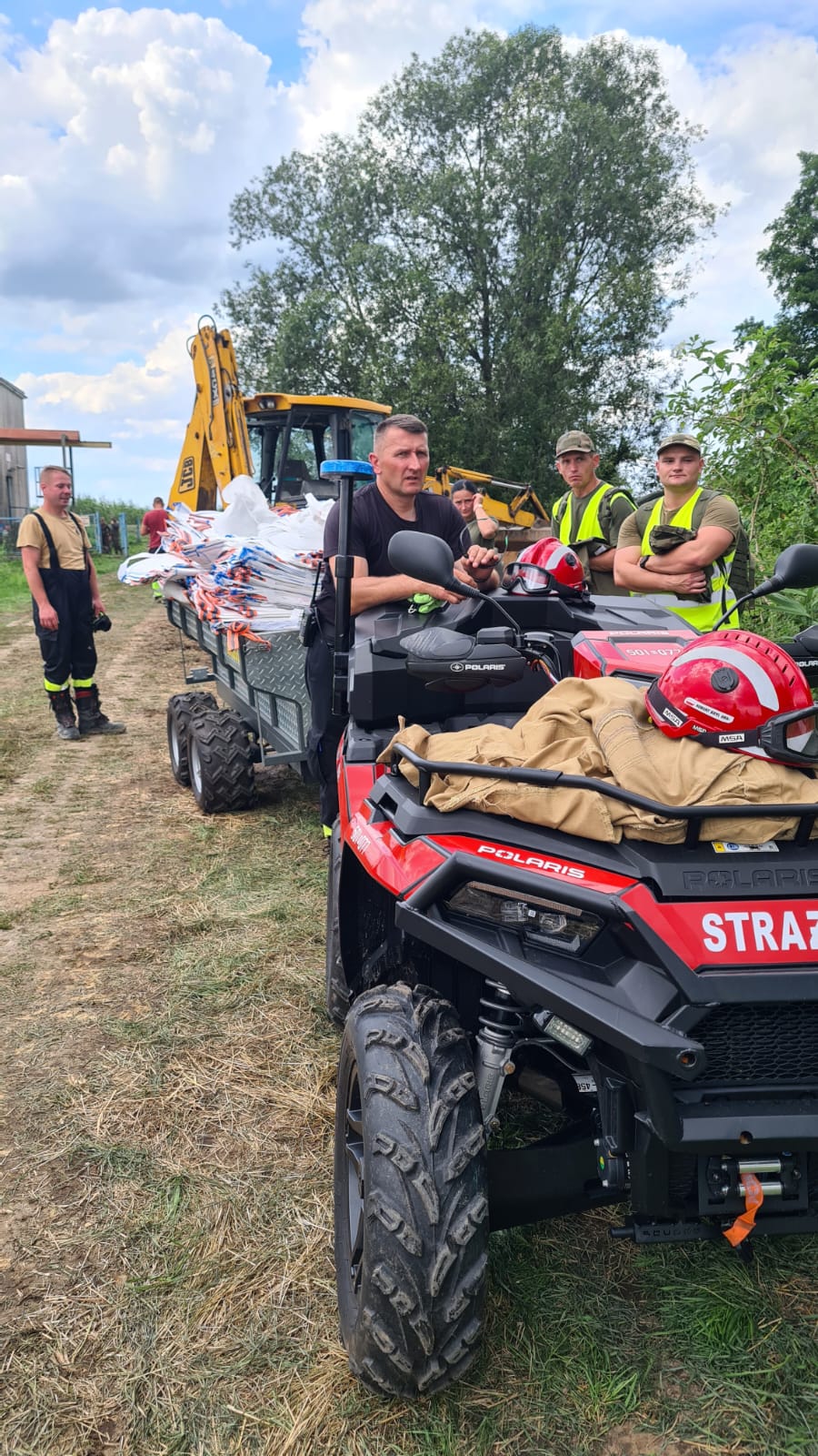 W trudnych warunkach terenowych, jakimi były mokradła oraz podmokły teren w okolicach przerwanego wału, pojazdy takie jak quad i przyczepa terenowa okazały się niezbędne. Dzięki nim strażacy mogli łatwiej dotrzeć do miejsca zdarzenia, gdzie ciężki sprzęt nie miałby dostępu. Quad z przyczepą dostarczał worki i piasek, które były kluczowe w procesie uszczelniania wyrwy. Tego typu pojazd, zakupiony przez jednostkę w ubiegłym roku, sprawdził się już w wielu akcjach ratowniczych, zarówno na terenie województwa warmińsko-mazurskiego, jak i w innych częściach Polski. Dzięki mobilności oraz zdolności poruszania się w trudnym terenie, strażacy byli w stanie skutecznie wykonywać swoje zadania.