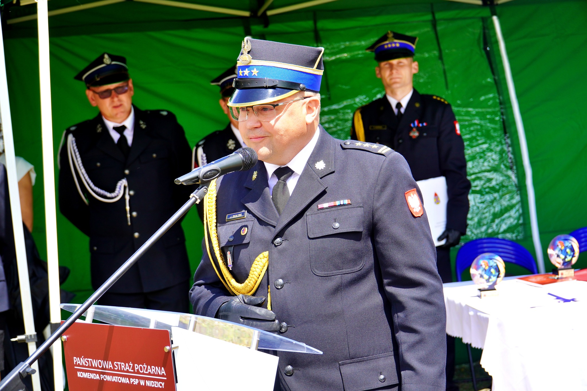 Na koniec uroczystości głos zabrał st.bryg. Mariusz Gęsicki Z-ca Warmińsko – Mazurskiego Komendanta Wojewódzkiego PSP, który odczytał list okolicznościowy z życzeniami Warmińsko-Mazurskiego Komendanta Wojewódzkiego nadbryg. Michała Kamienieckiego z okazji obchodzonego jubileuszu.