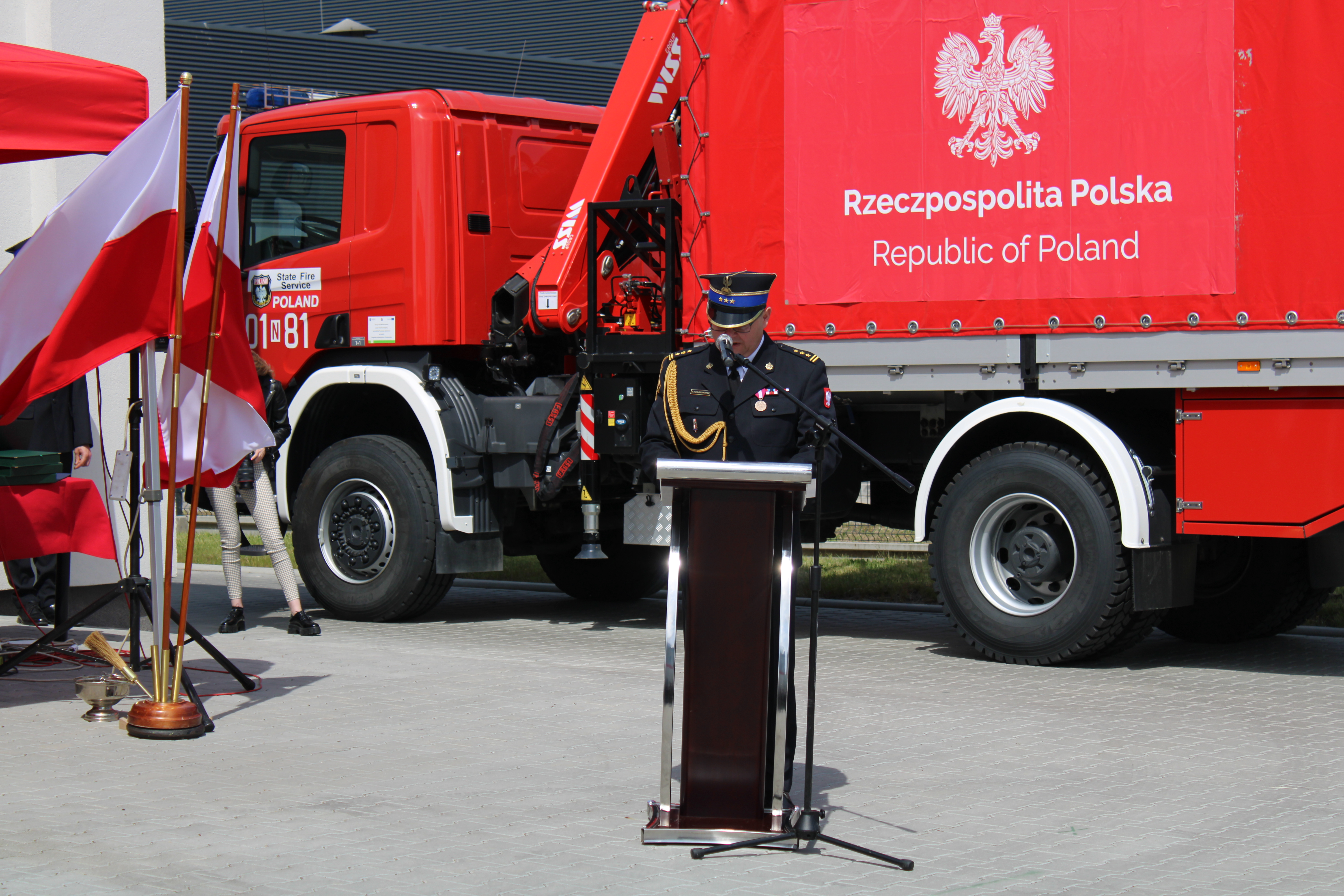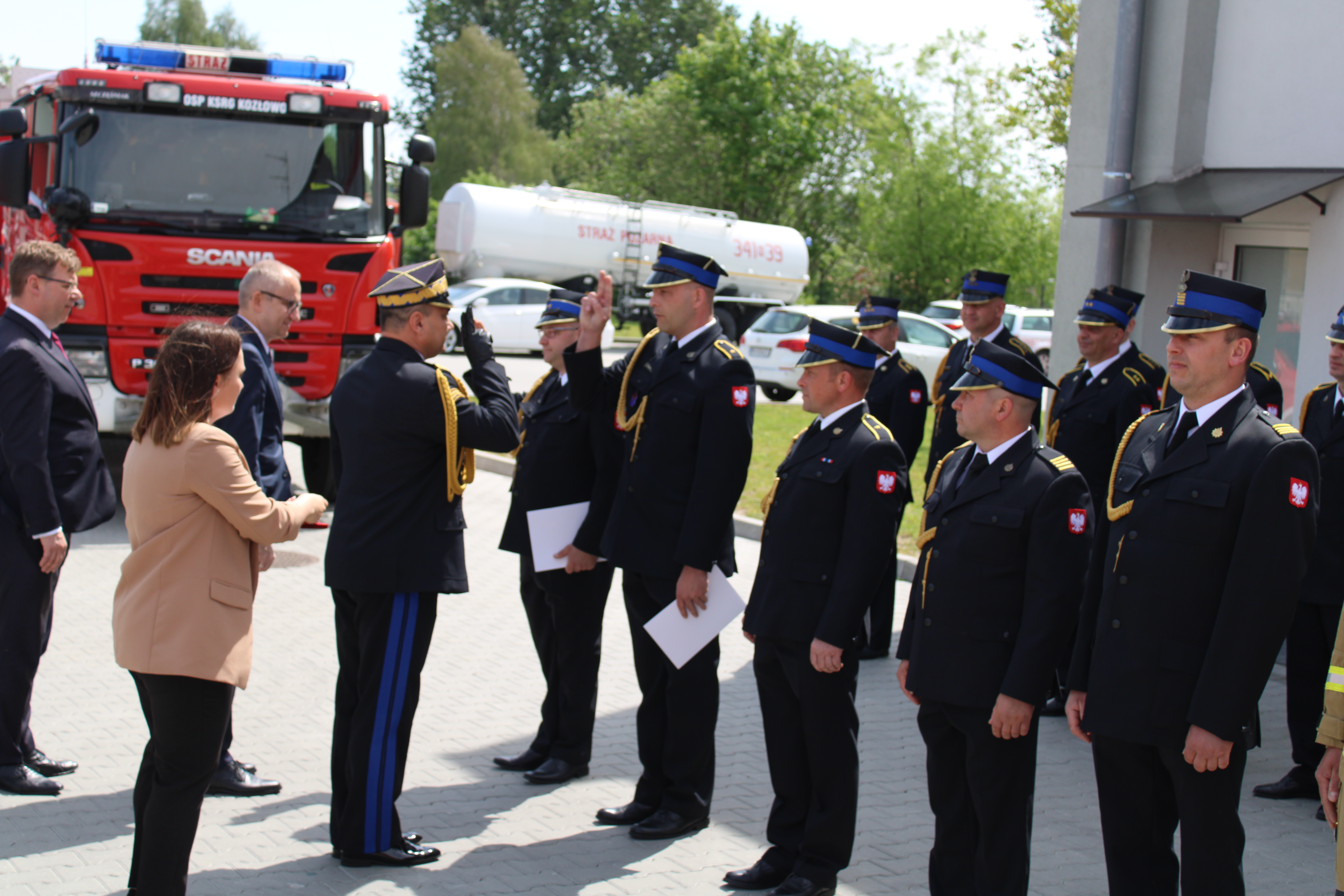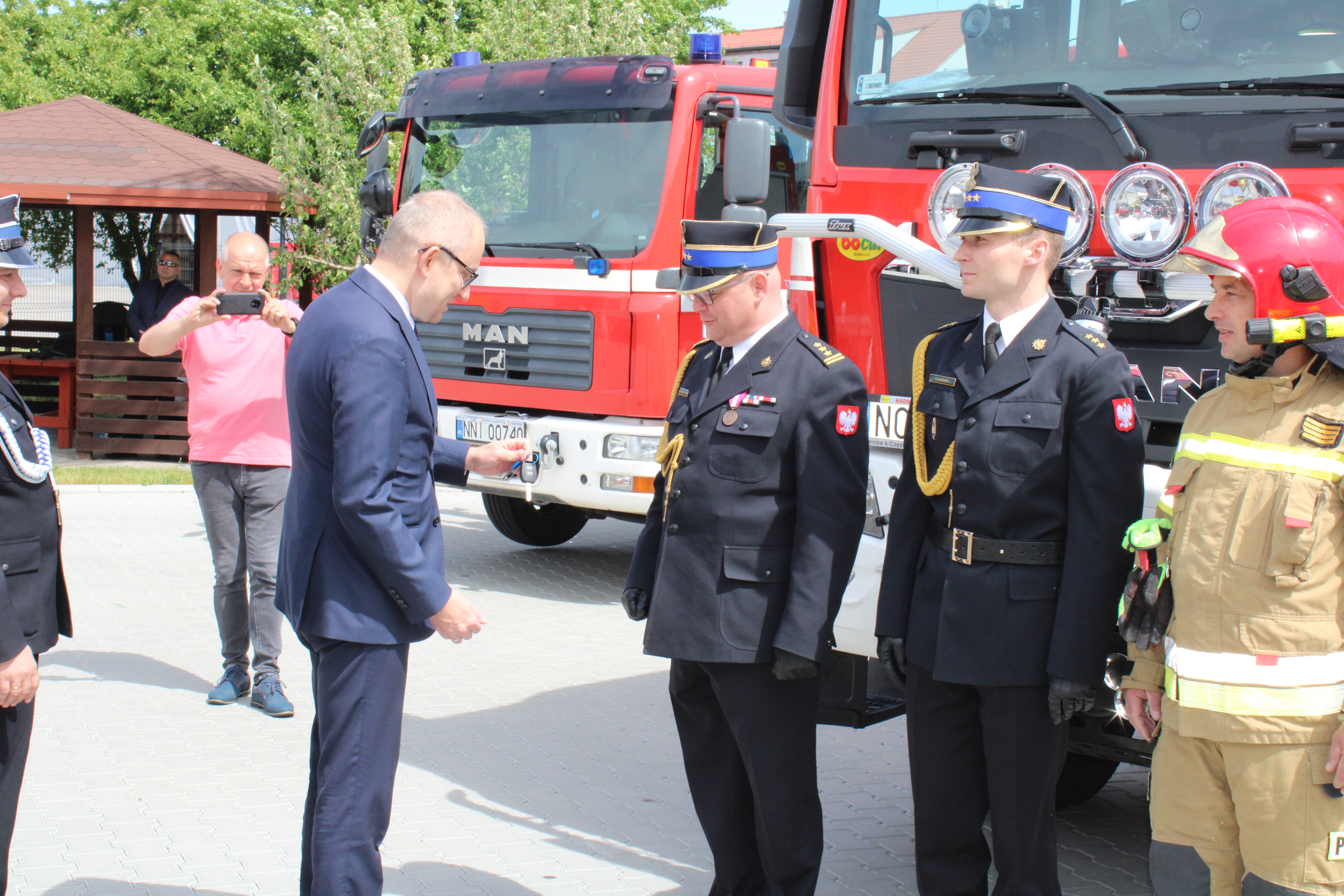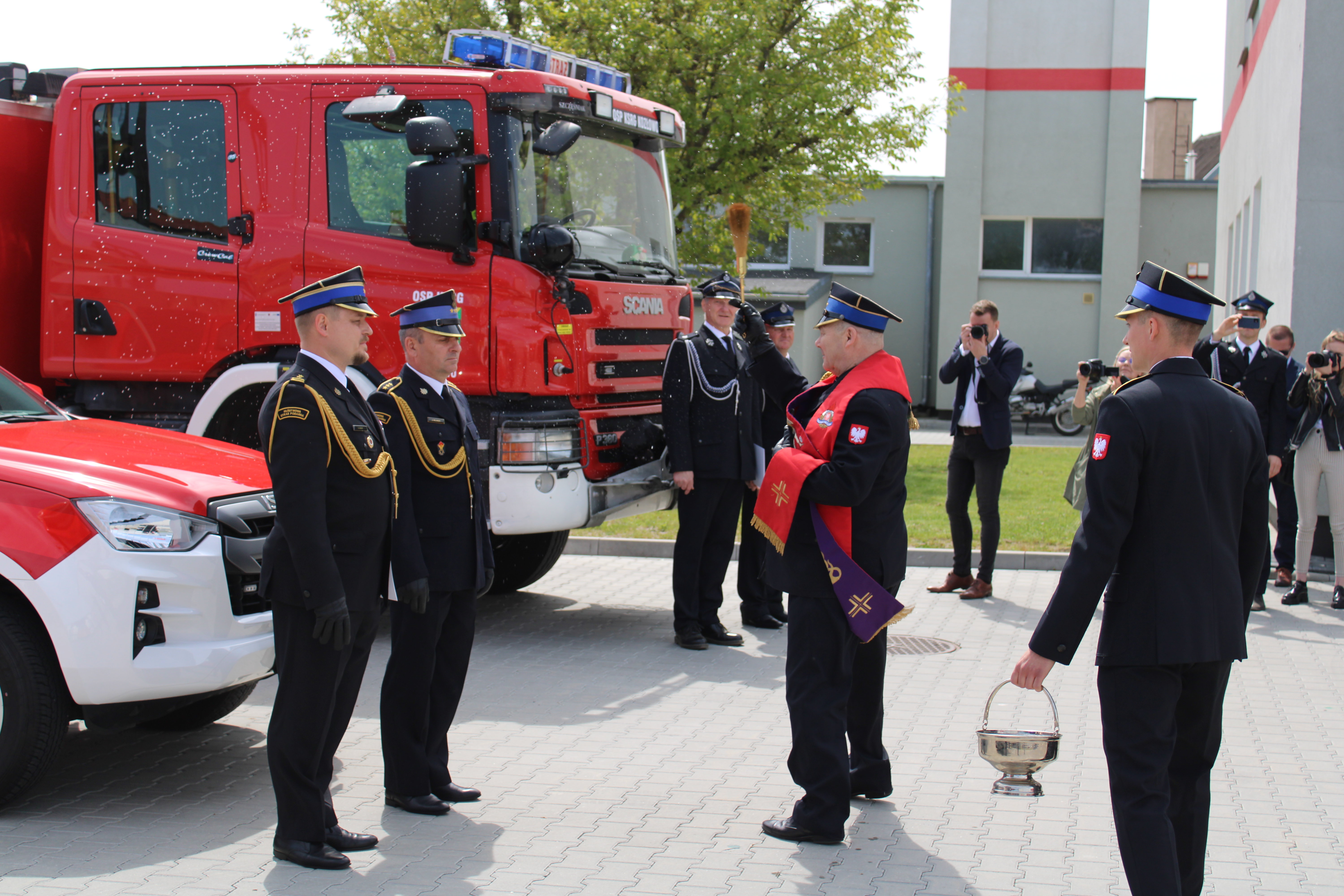 Ostatnim elementem uroczystości było przekazanie oraz poświęcenie nowych pojazdów pożarniczych Komendy Powiatowej PSP w Nidzicy: ciężkiego samochodu ratowniczo-gaśniczego marki Man oraz lekkiego samochodu specjalnego rozpoznania ratowniczego marki Isuzu Komendzie Powiatowej PSP w Nidzicy, a także ciężkiego samochodu ratowniczo-gaśniczego marki Scania jednostce OSP w Kozłowie.