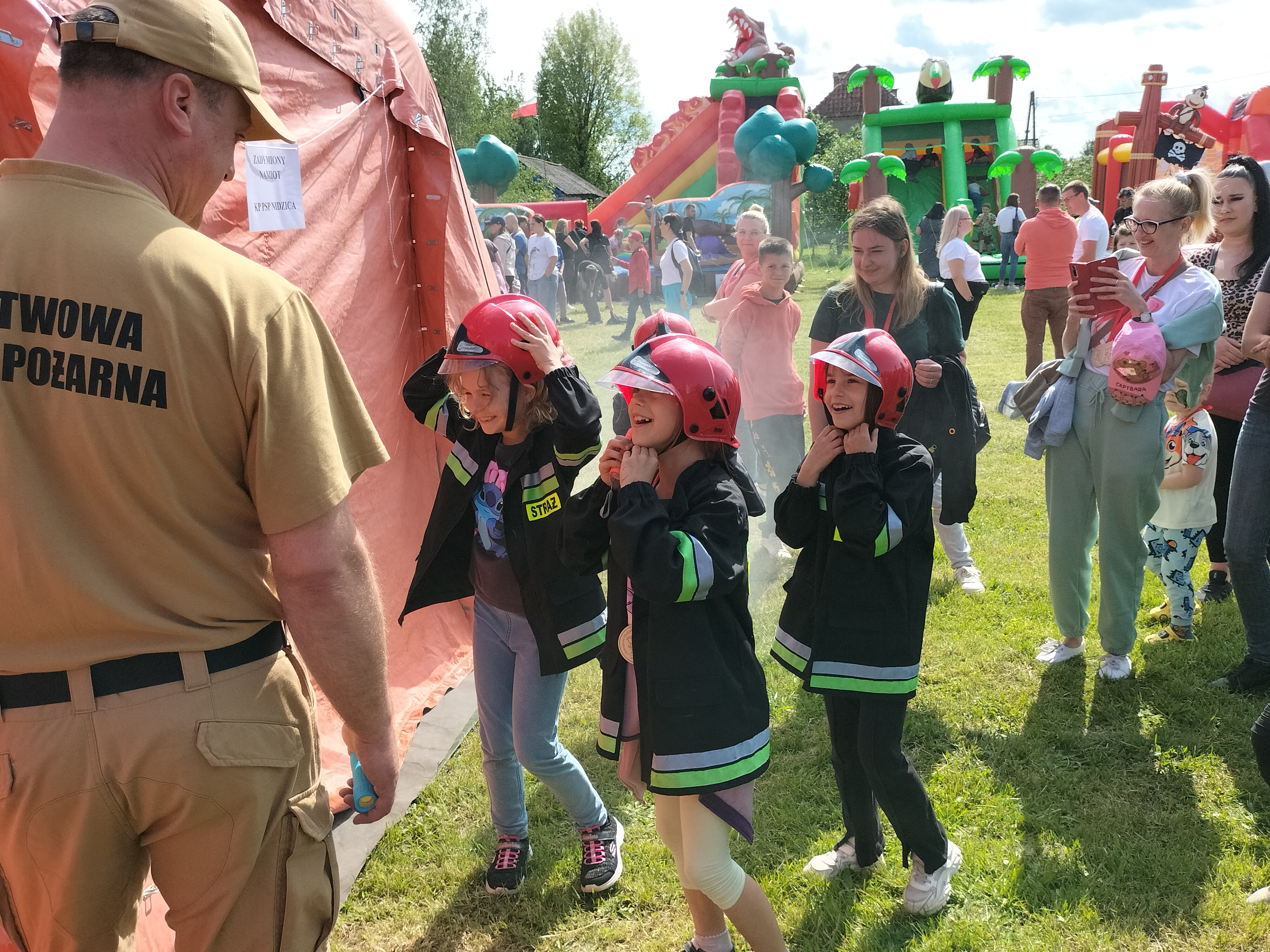 Po zakończeniu uroczystości odbyły się pokazy strażackie, prezentacje sprzętu i pojazdów oraz atrakcje przygotowane dla dzieci w ramach Strażackiego Dnia Dziecka.