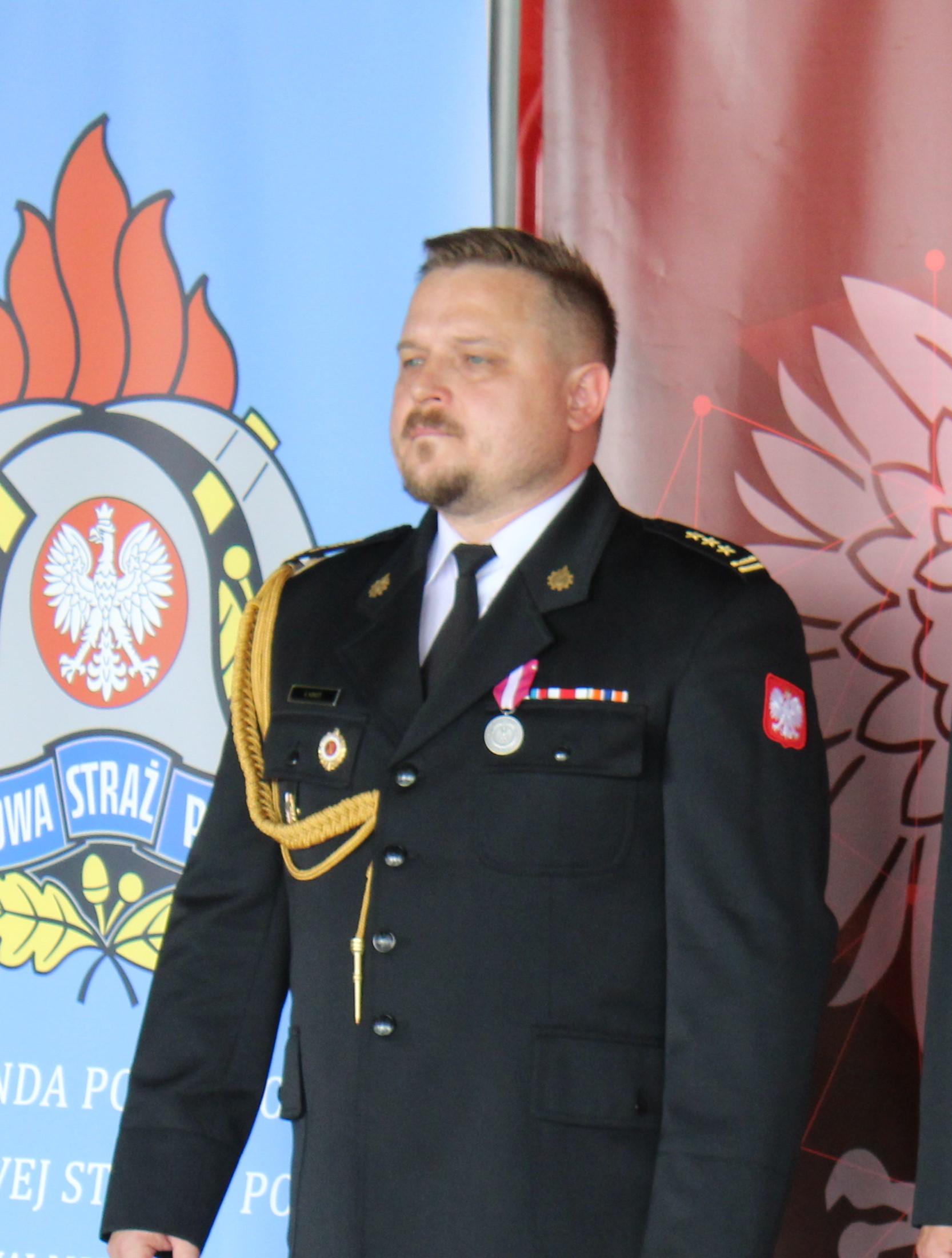 odznaczonym wieloma odznaczeniami resortowymi, wyróżnianym i nagradzanym przez Komendanta Głównego Państwowej Straży Pożarnej.
