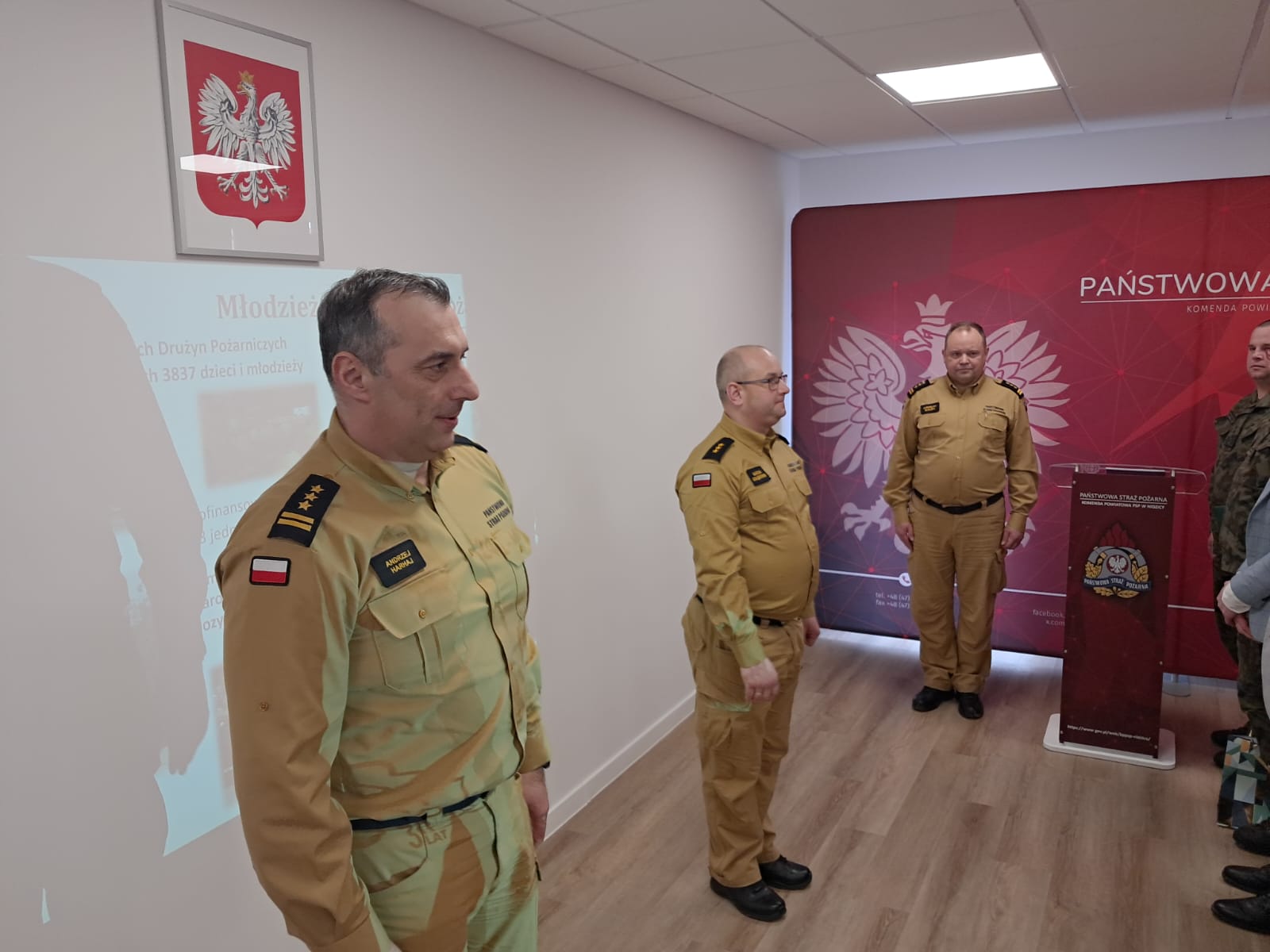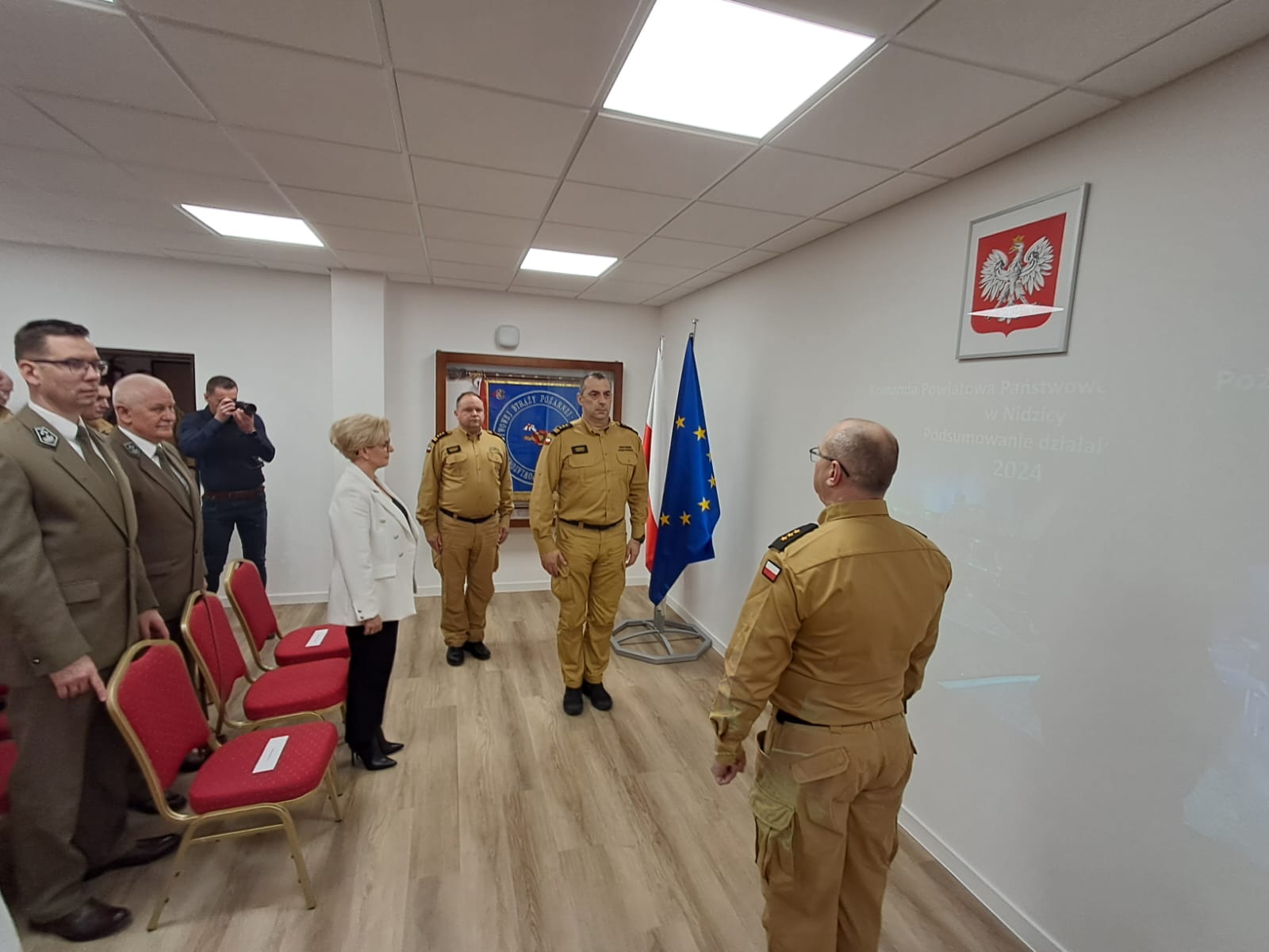 W spotkaniu udział wzięli funkcjonariusze i pracownicy cywilni Komendy Powiatowej PSP w Nidzicy oraz zaproszeni goście: st. bryg. Andrzej Harhaj - Zastępca Warmińsko-Mazurskiego Komendanta Wojewódzkiego PSP, Bożena Chmielewska - Wicestarosta Powiatu Nidzickiego, Zbigniew Słupski - Wiceprzewodniczący Rady Powiatu w Nidzicy (były Komendant Powiatowy PSP w Nidzicy - bryg. w stanie spoczynku), Marek Wolszczak - Wójt Gminy Kozłowo, Mateusz Jaroszewski - Wójt Gminy Janowo, Piotr Rakoczy – Wójt Gminy Janowiec Kościelny, płk. Tomasz Isio - Dowódca 16 Brygady Zmotoryzowanej WP w Załuskach, kpt. Martyn Spirydowicz - Dowódca w Dywizyjnym Ośrodku Szkolenia Poligonowego w Muszakach, podinsp. Tomasz Kamiński p.o. Komendanta Powiatowego Policji w Nidzicy, ks. prałat mł.bryg. Andrzej Bawirsz - Kapelan Wojewódzki Strażaków Warmii i Mazur, Marcin Zega - Nadleśniczy Nadleśnictwa Nidzica, Edward Studziński - Nadleśniczy Nadleśnictwa Wielbark.