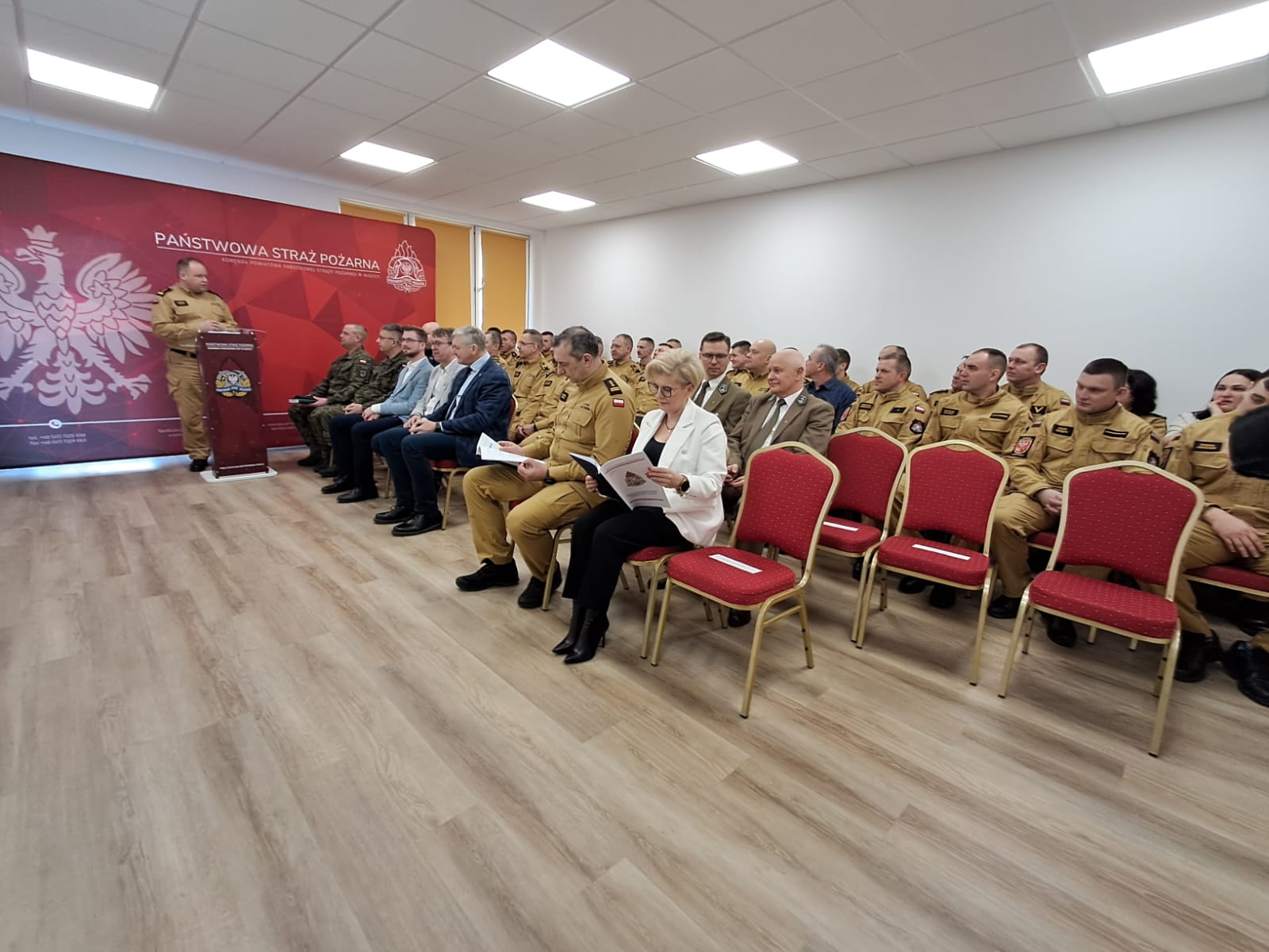 Po zakończonej prezentacji głos zabrała Pani Bożena Chmielewska Wicestarosta Powiatu Nidzickiego, która podkreśliła rolę społeczną i zaangażowanie strażaków w zapewnieniu bezpieczeństwa mieszkańców powiatu. Głos zabrał również Pan Marcin Zega Nadleśniczy Nadleśnictwa Nidzica, który krótko podsumował przedsięwzięcia realizowane wspólnie ze służbami leśnymi w 2024 roku.