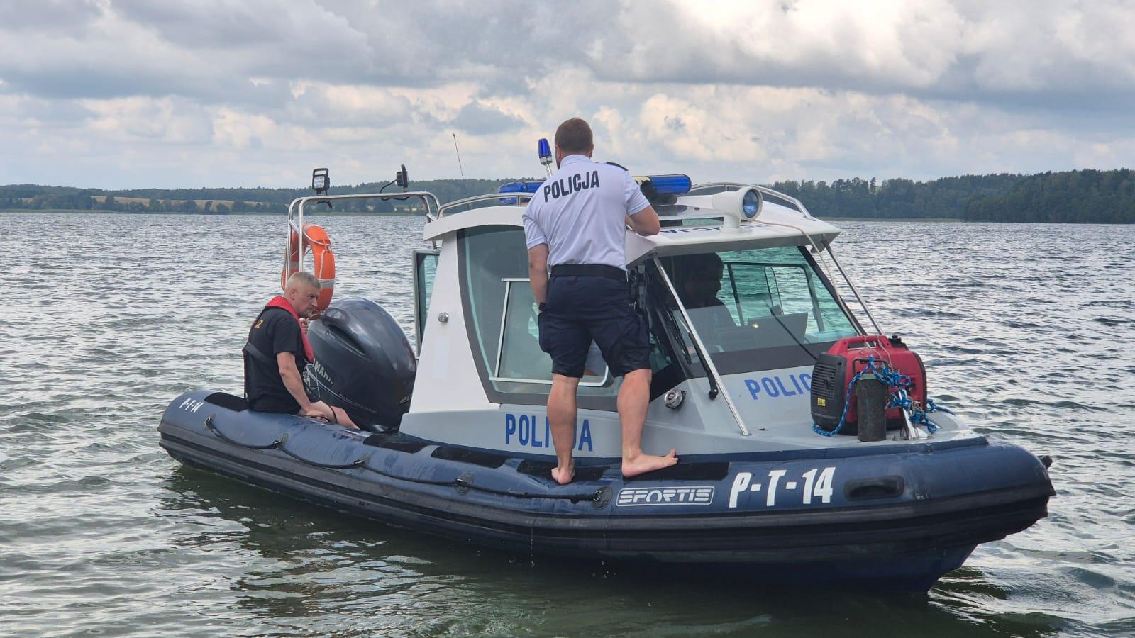 We wtorek (23.07.2024) sonar Specjalistycznej Grupy Ratownictwa Wodno-Nurkowego w Olsztynie wskazał łódź odpowiadającą kształtem łodzi, którą przemieszczali się mężczyźni. Po szczegółowym zweryfikowaniu obiektu podjęto decyzję o zejściu nurka na dno jeziora i wydobyciu łodzi na brzeg. Po ocenie łodzi przez policję stwierdzono, że jest to inna łódź niż ta, którą pływały poszukiwane osoby. W związku z powyższym przystąpiono do dalszych przeszukiwań dna jeziora w wyznaczonych sektorach.