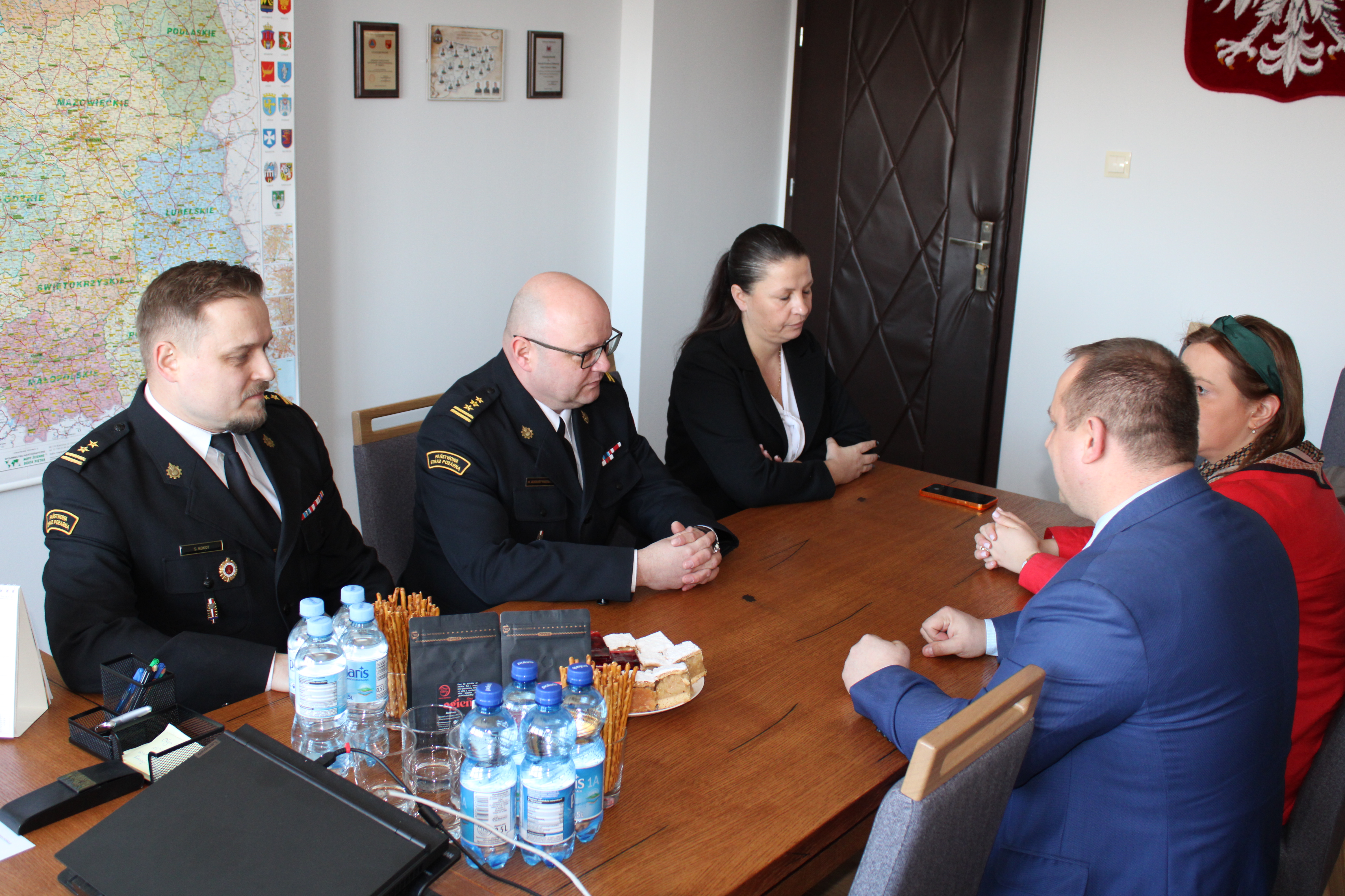 W spotkaniu Pani Minister ze strażakami wzięli udział między innymi Starosta Nidzicki Marcin Paliński, Komendant Powiatowy PSP w Nidzicy st.bryg.Marek Augustynowicz oraz Zastępca Komendanta Powiatowego PSP w Nidzicy bryg.Szymon Kokot. Następnie dokonano wizytacji komendy. Komendant Powiatowy PSP w Nidzicy podziękował za wsparcie przy realizacji dotychczasowych inwestycji w komendzie, podkreślając zaangażowanie samorządu i KW PSP w Olsztynie, co przyczyniło się do znacznej poprawy warunków lokalowych oraz modernizacji taboru samochodowego. Następnie omówiono dalsze potrzeby związane z poprawą i modernizacją infrastruktury.