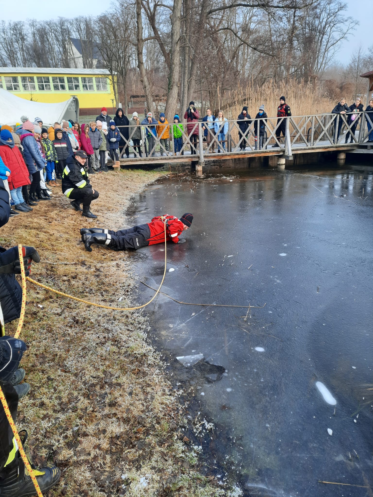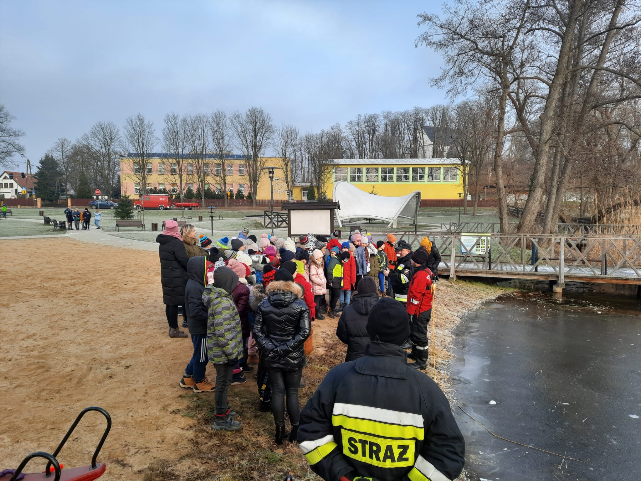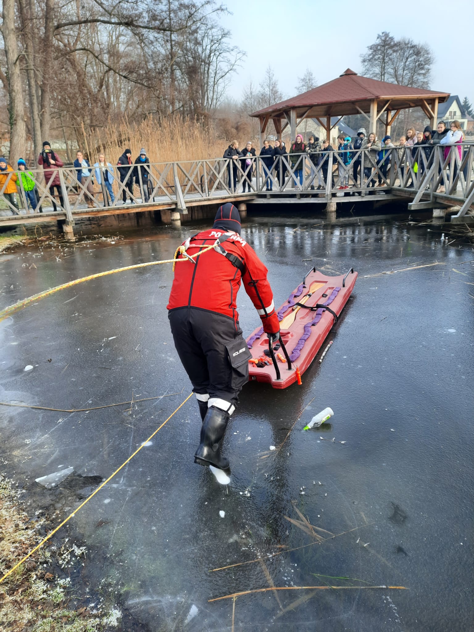 Jak wiadomo, to właśnie zamarznięty lód na akwenach jest największym zagrożeniem w czasie zimy. Pomimo ostrzeżeń służb ratunkowych, co roku pod lodem giną ludzie. Dlatego chcemy uświadomić dzieciom jakie niebezpieczeństwa czyhają na osoby, które wchodzą na zamarznięte akweny, ale przede wszystkim pokazać sposoby zachowania, które pozwolą uratować osobę tonącą.