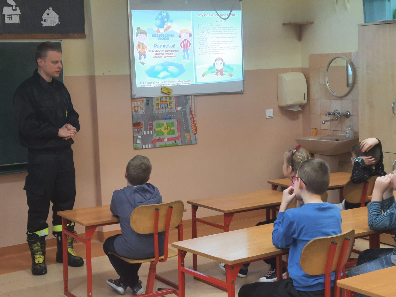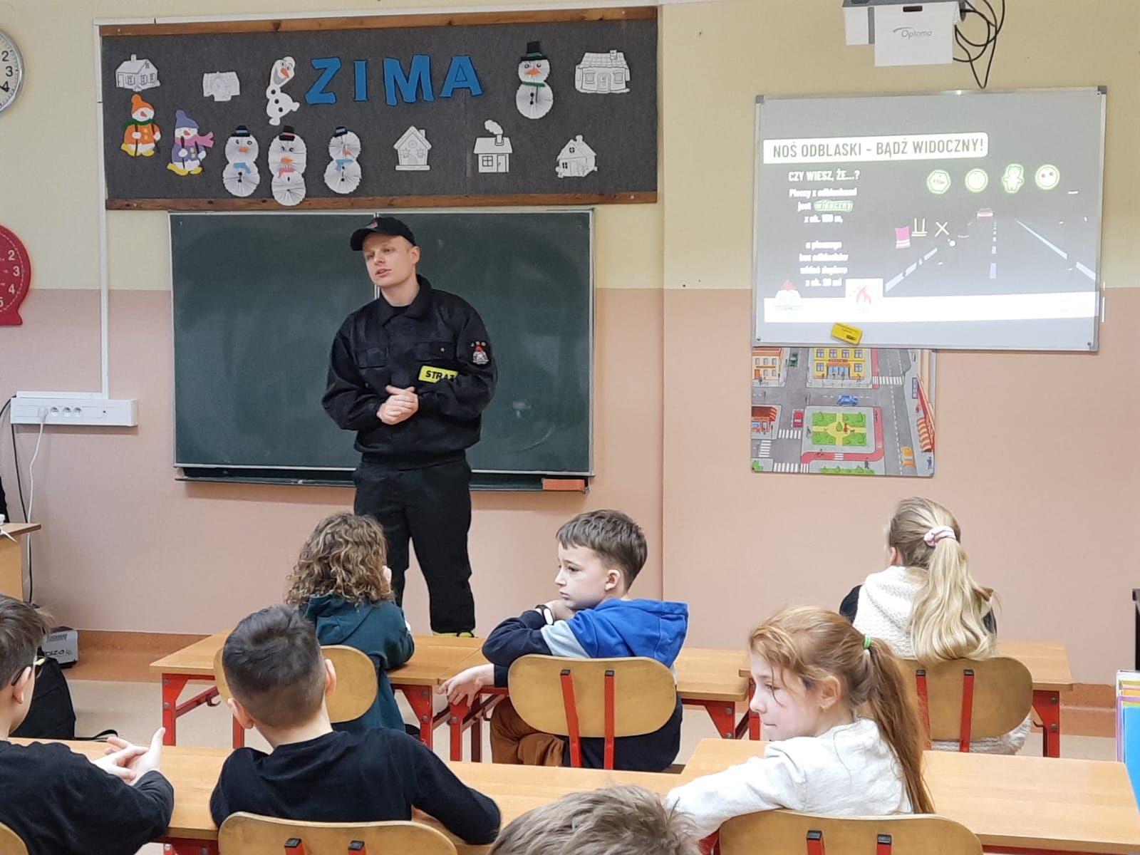 Strażacy, podczas prelekcji, poruszali tematy związane z wchodzeniem na zamarznięte akweny, pomocą osobie pod którą zarwał się lód, zasadami wzywania służb ratowniczych, zjeżdżaniem na nartach i sankach w pobliżu ciągów komunikacyjnych (dróg i chodników), narażeniem na niskie temperatury, zagrożeniami ze strony nawisów śnieżnych i sopli lodowych oraz poruszaniem się po zmierzchu bez elementów odblaskowych.