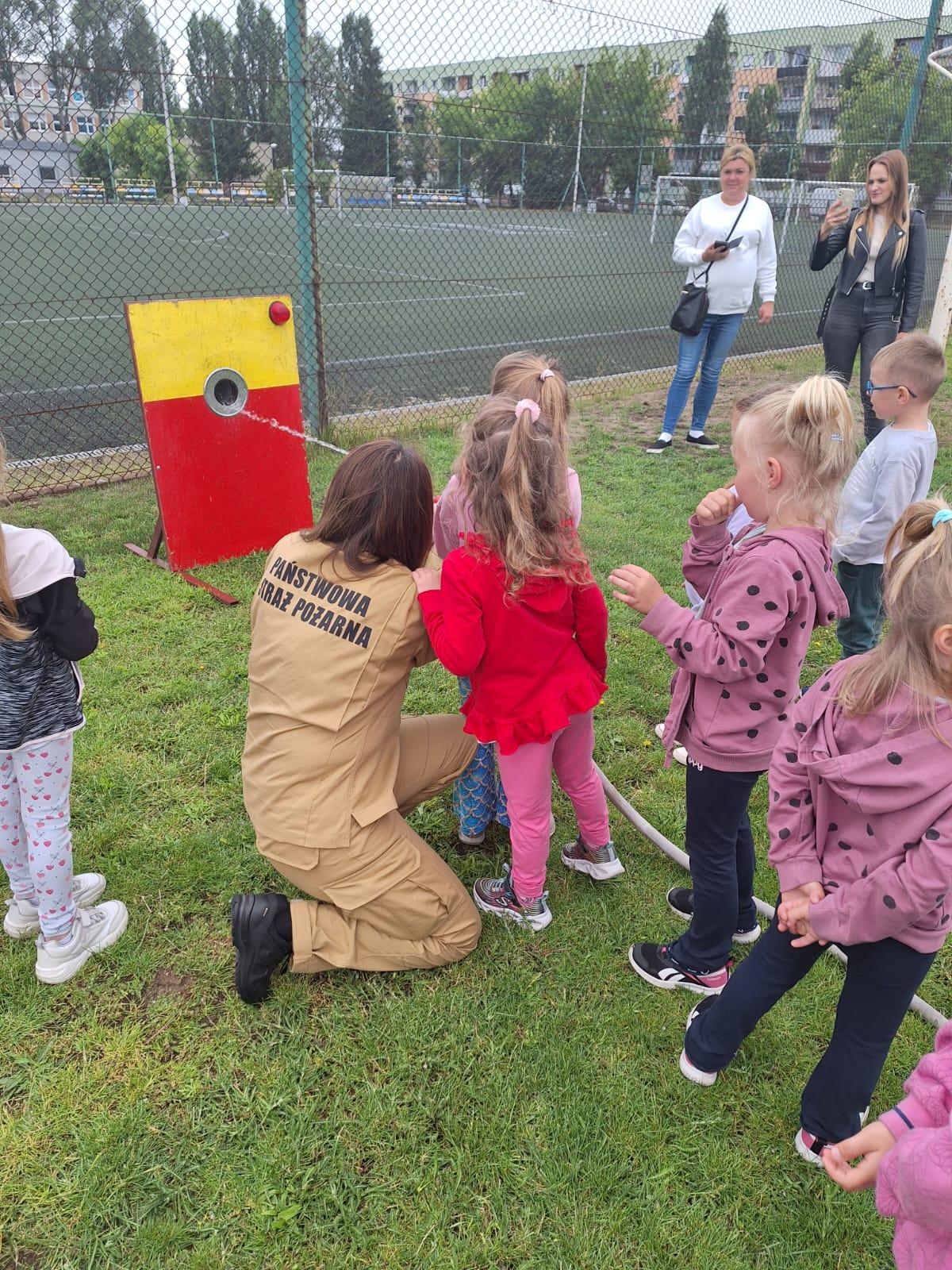 Dzieci mogły dowiedzieć się do czego służą poszczególne narzędzia i sprzęt oraz obejrzeć od środka samochód gaśniczy będący na wyposażeniu Jednostki Ratowniczo – Gaśniczej w Nowej Soli. Ponadto przedszkolaki mogły zmierzyć się z trudnościami dziecięcego toru przeszkód. Najwięcej radości sprawiło dzieciom lanie wody do celu i przymierzanie hełmu strażackiego aby poczuć się przez chwilę jak prawdziwy strażak.