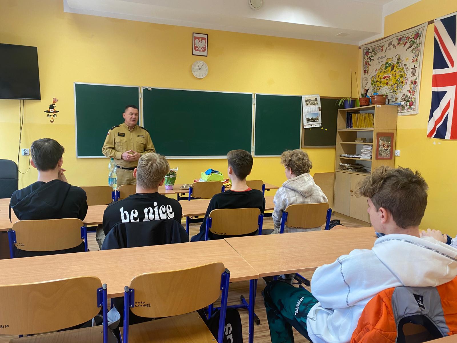 Nowosolscy strażacy w dniu dzisiejszym (05.04) zostali zaproszeni na „Maraton Naukowy”, gdzie mieli okazję przedstawić specyfikę pracy strażaka oraz zapoznać uczniów klas pierwszych z możliwościami kontynuacji nauki w szkołach Państwowej Straży Pożarnej (Szkoły Aspirantów i Akademia Pożarnicza).