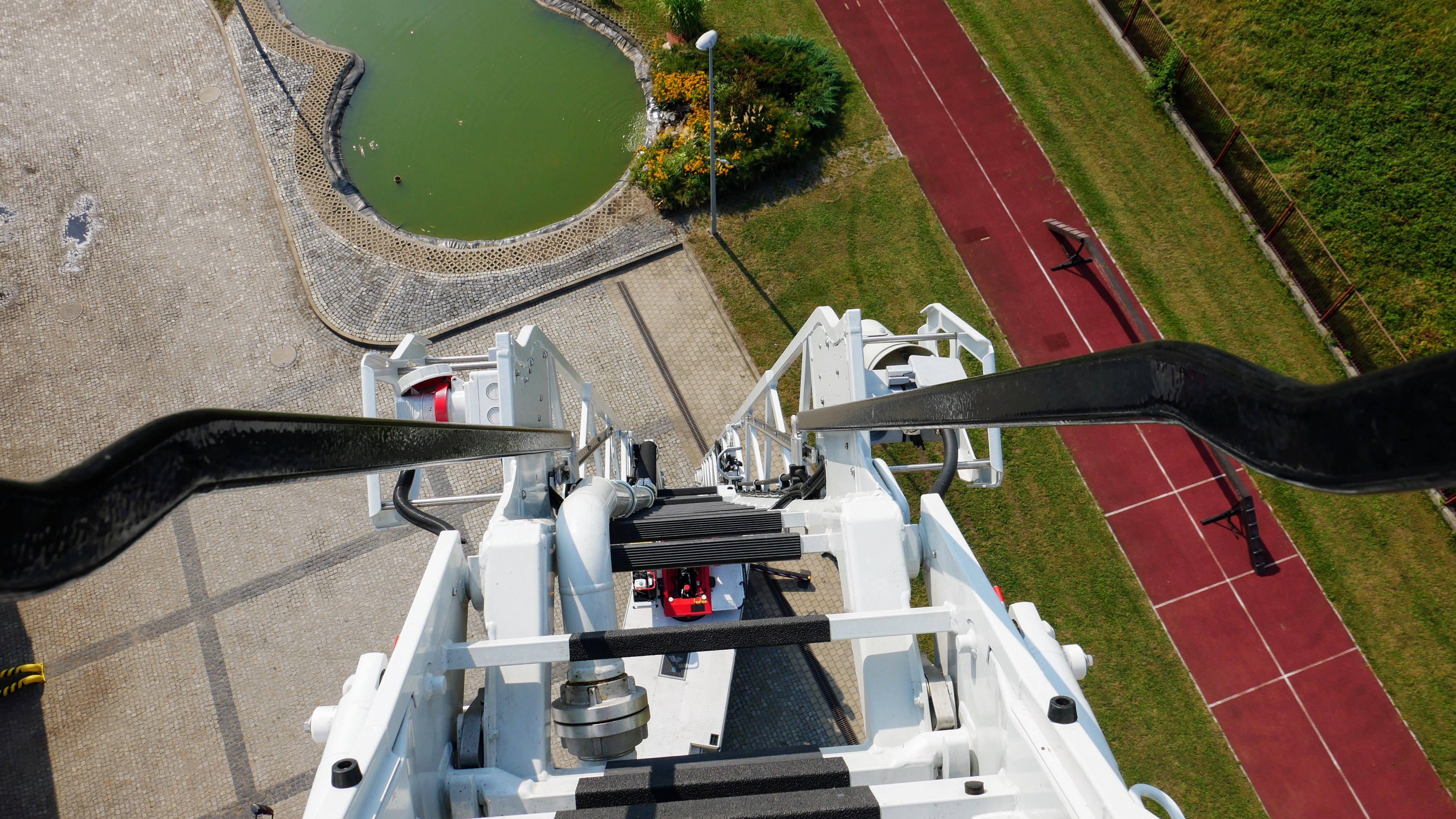 ‘Ciężki samochód specjalny z drabiną mechaniczną o wysokości 41 metrów z koszem ratowniczym dla 5 osób, przystawką do mocowania noszy ratowniczych, działkiem wodno-pianowy o wydajności 1 600 l/min oraz funkcją udźwigu 4000 kg’.