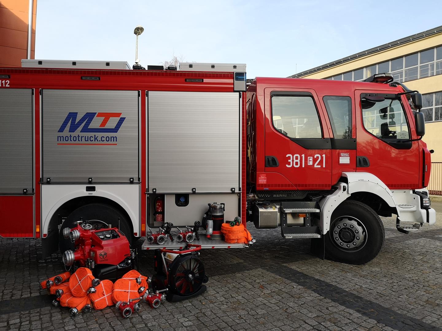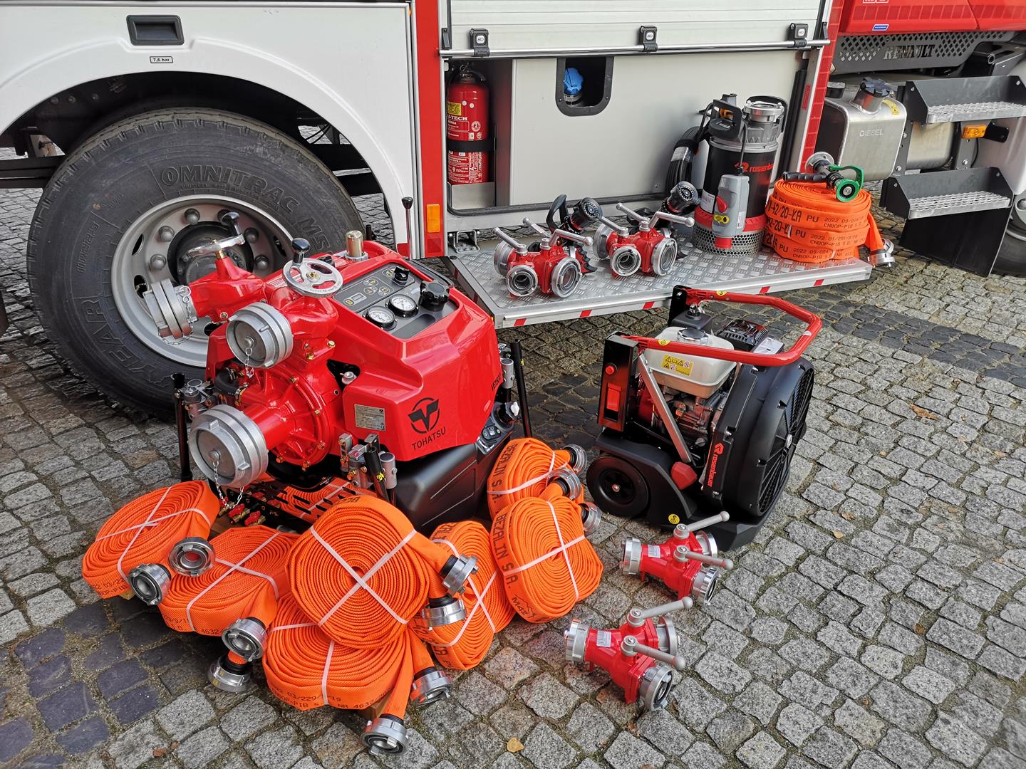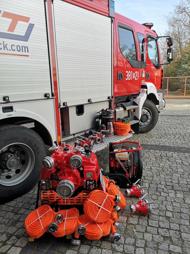 W ramach doposażenia nowego średniego samochodu ratowniczo-gaśniczego marki Renault Komenda Powiatowa PSP w Nowej Soli dokonała zakupu między innymi motopompy pożarniczej marki Tohatsu M16/8 wraz z dodatkowym sprzętem w postaci armatury pożarniczej tj.: pożarniczych węży tłocznych, rozdzielaczy, prądownic wodno-pianowych typu turbo oraz wentylatora oddymiającego z funkcją wytwarzania piany gaśniczej oraz pompy zatapialnej o dużej wydajności, zestawu elektronarzędzi marki Milwaukee, sprzętu wysokościowego, wyposażenia nurkowego, detektora wielogazowego, aparatów powietrznych z butlami kompozytowymi oraz przenośnego zestawu oświetleniowego marki Rosenbauer.